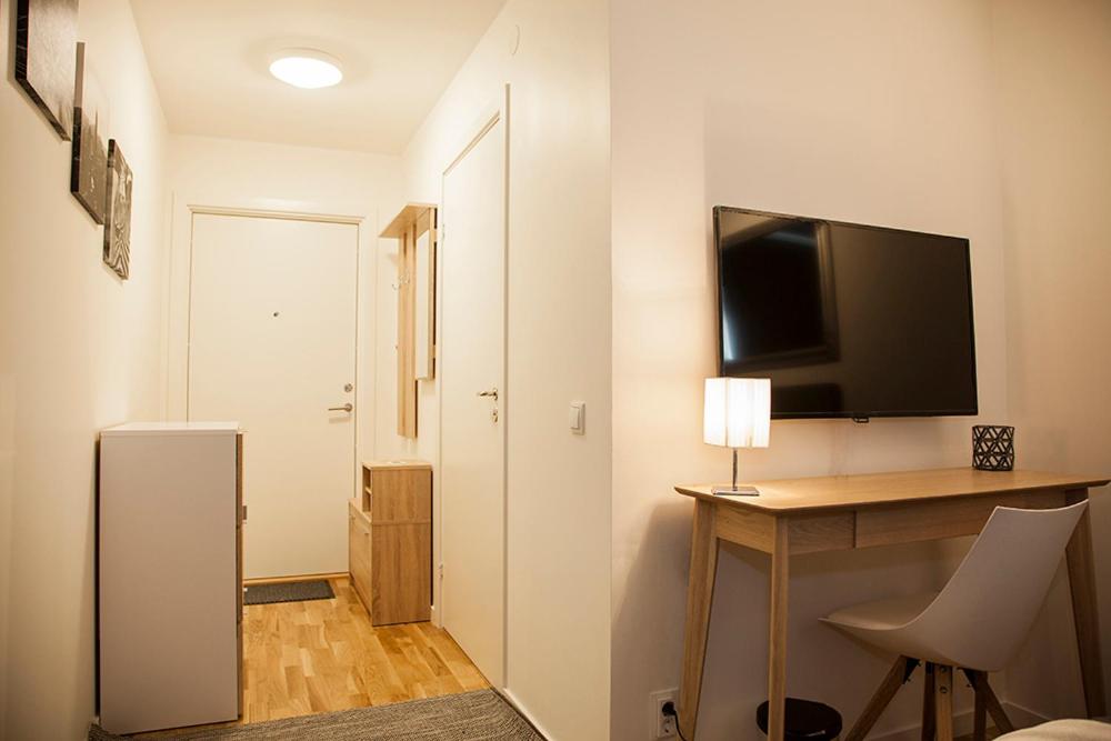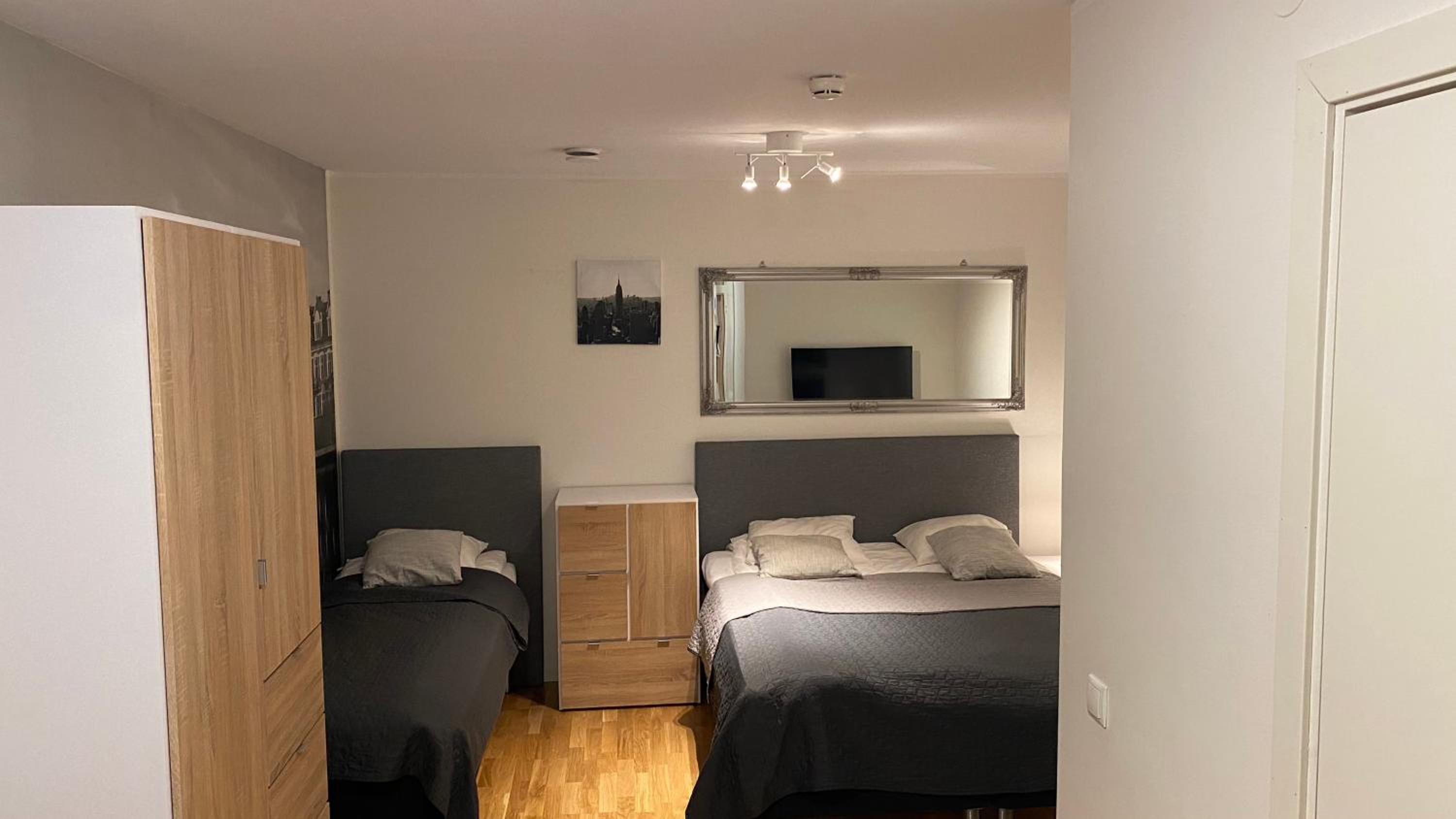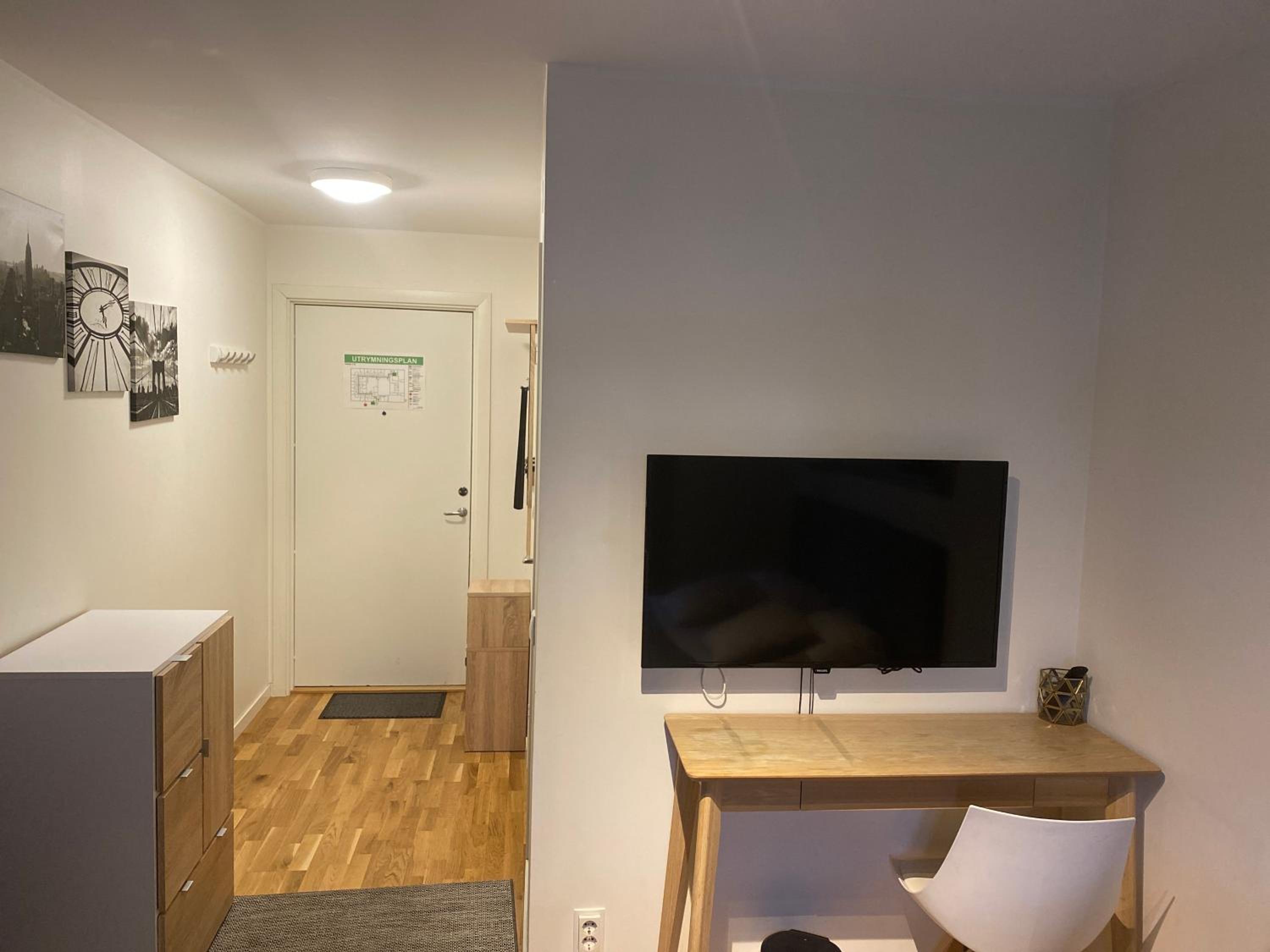 TV- utbudet var dåligt. Bara TV 1 och 2, Kunskapskanalen och en till kanal. Saknade alla övriga kanaler, t.ex TV3 och 4. Inställningsguiden för TV-n var på tyska. Luktade lite stekos på mornarna (från underliggande restauranger?)