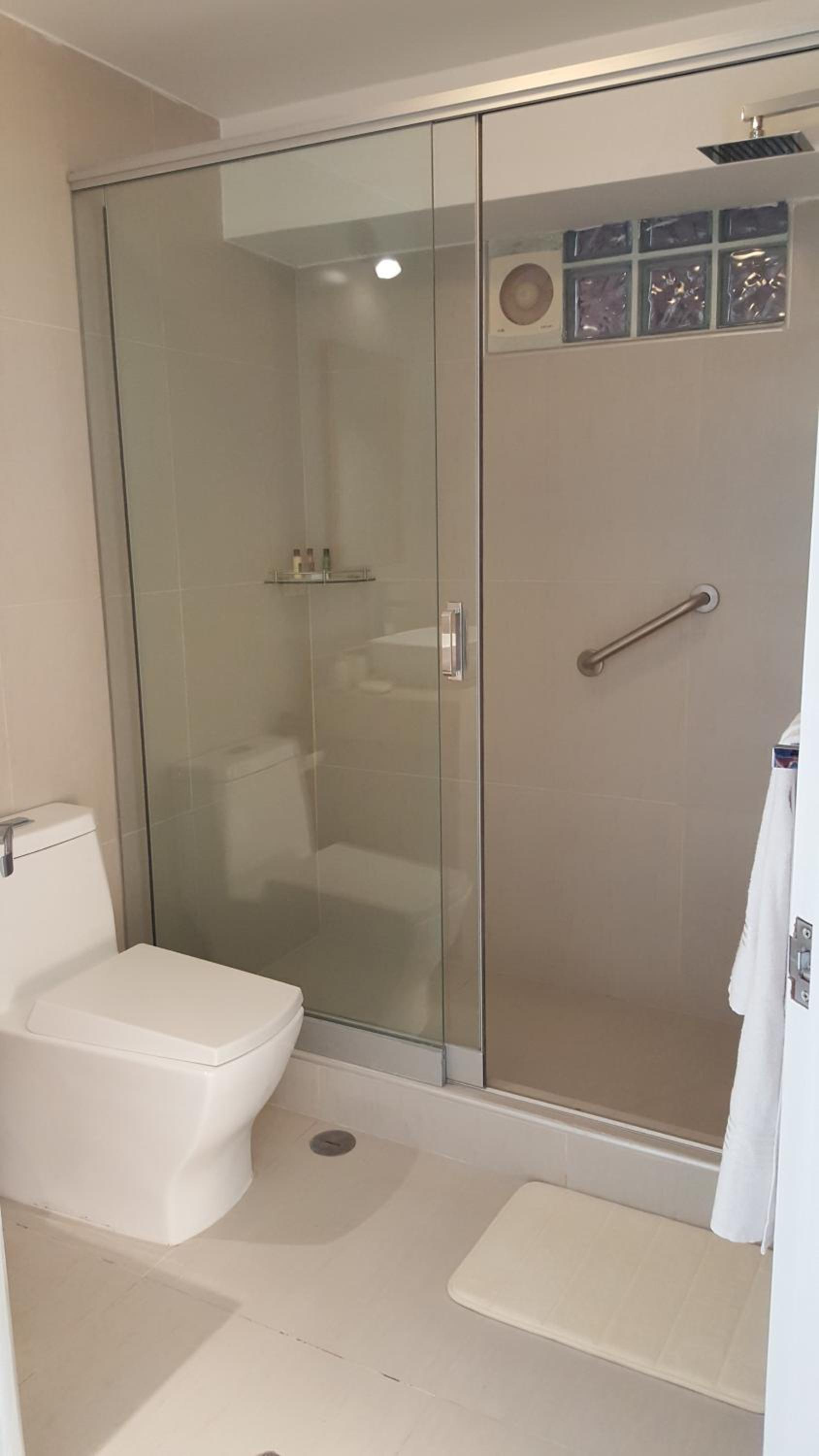 En la habitación 202 el agua de la ducha se empozaba un poco.