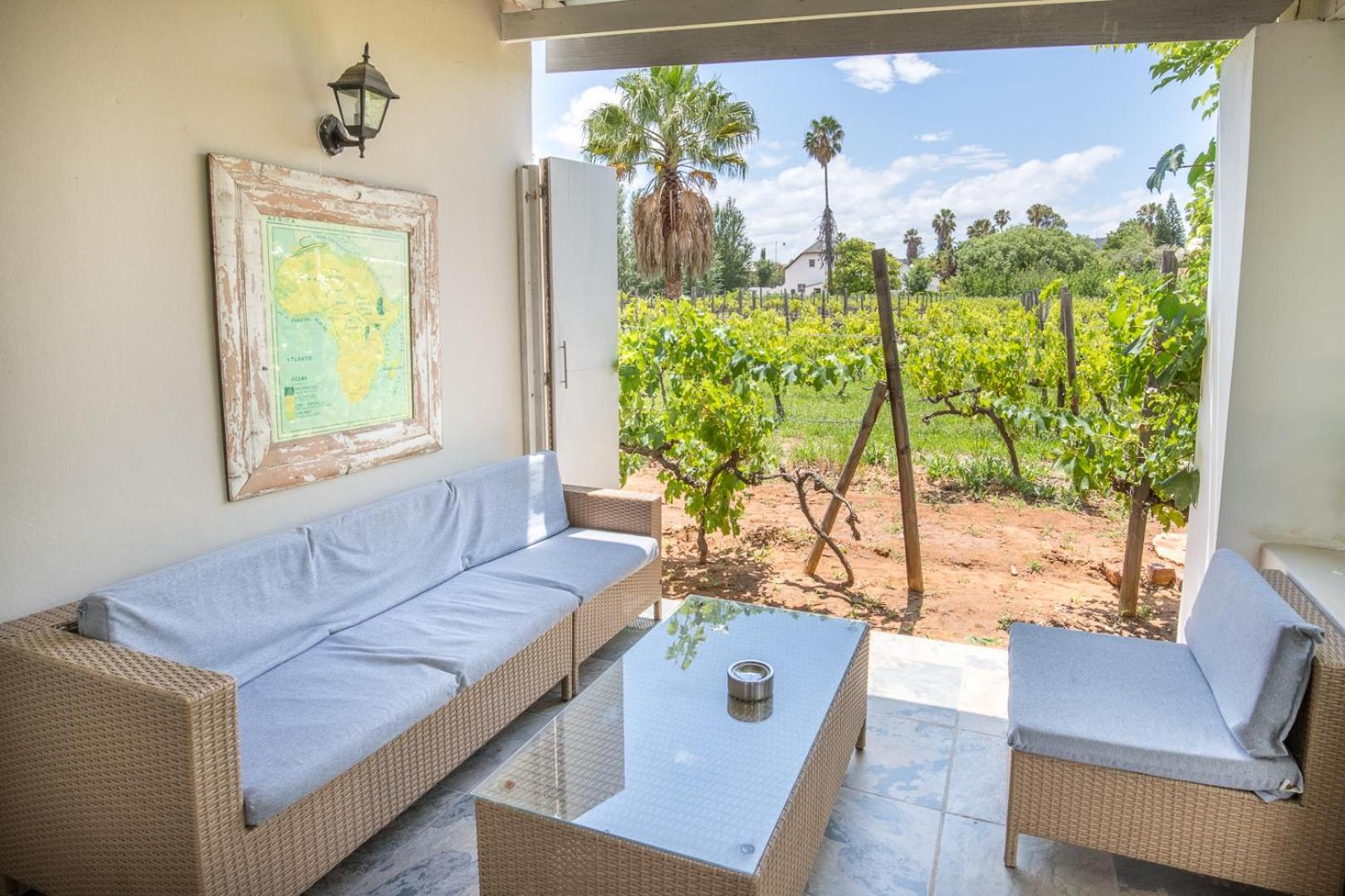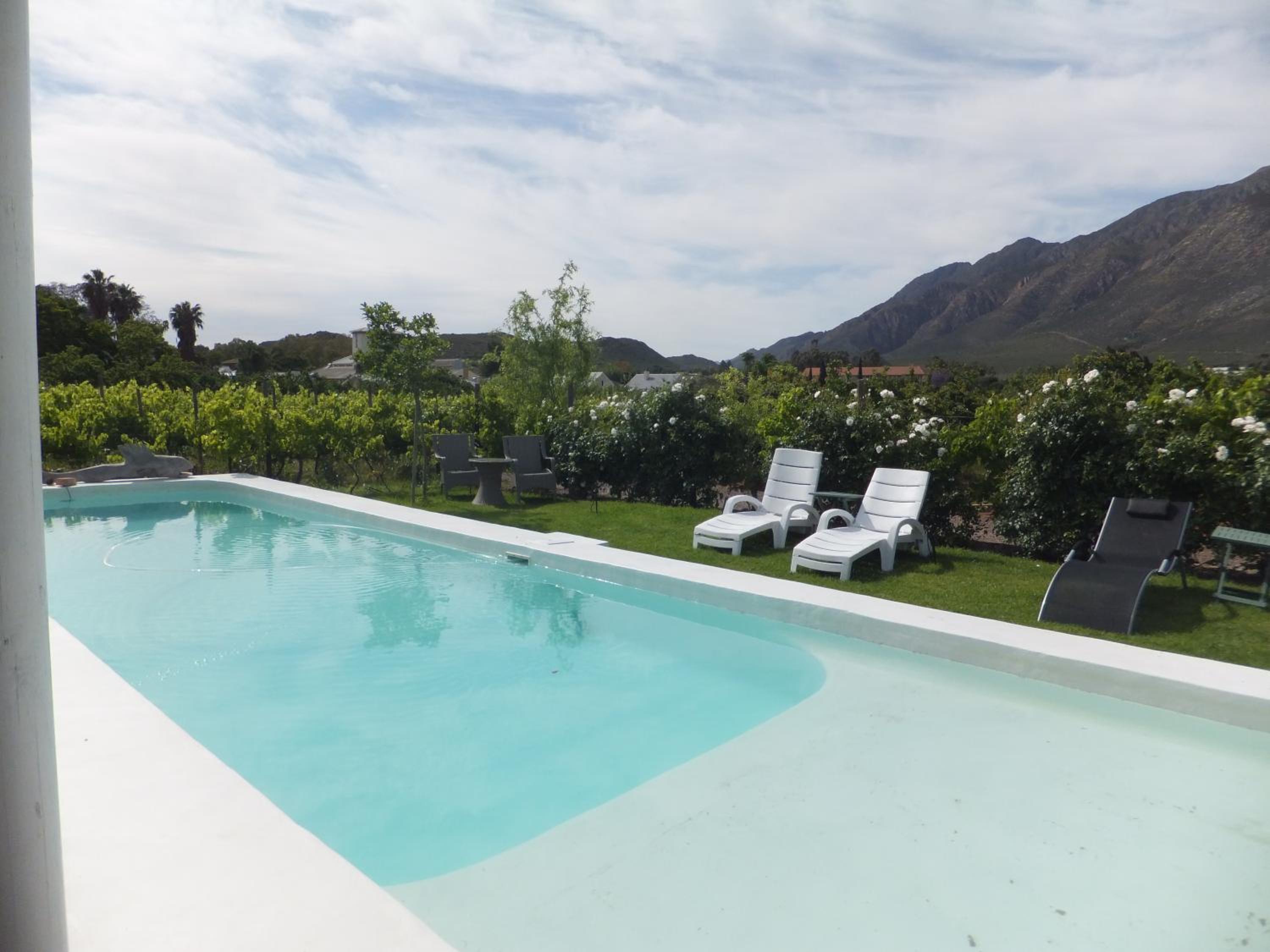 The property is in the middle of the attractive town of Montagu And yet is set amongst its own small vineyard. Our bedroom enjoyed a splendid view across the vineyard. The bedrooms and gardens were maintained impeccably. There was a full size swimming pool within the vineyard. We were using within walking distance of a variety of eating outlets. The events were comfortable. The breakfast was excellent and Estelle was a friendly and generous host. We would thoroughly recommend this property