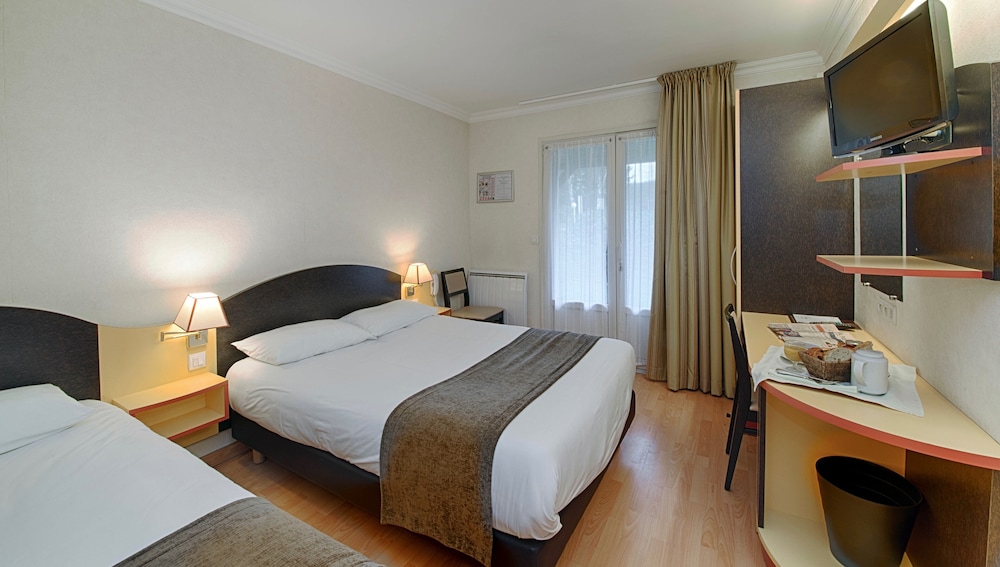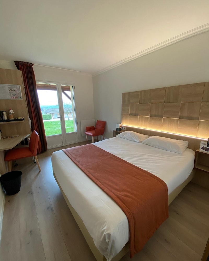 This hotel is very well located, just off the motorway for those driving through France, but set amongst fields so very quiet and safe. The rooms are very clean, there is lots of parking and although I could not have dinner there as we arrived too late, I have heard from family that the food is great. I can vouch for the tasty breakfast however. Will definitely visit again !