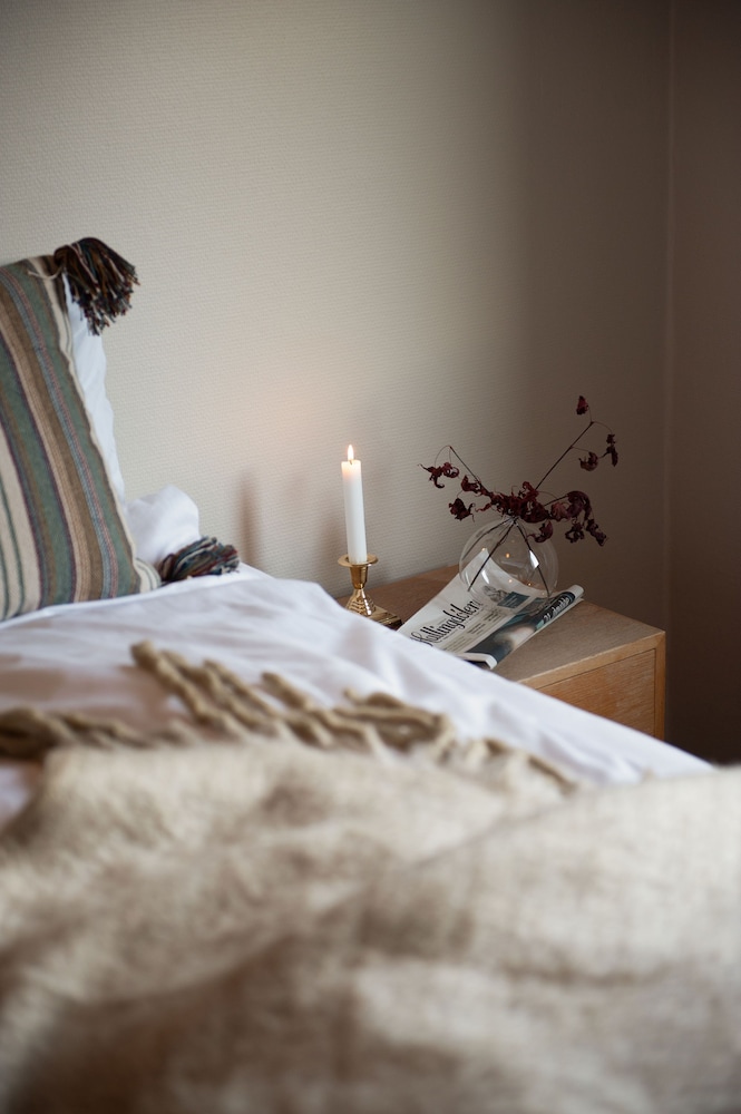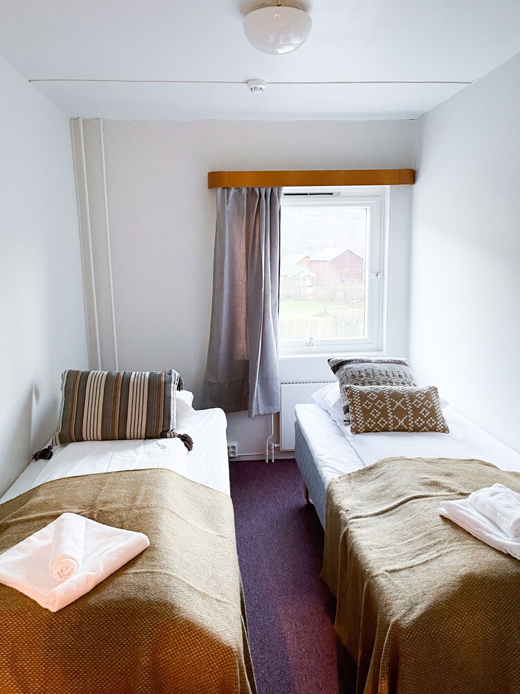 Virker lidt slidt på værelserne. Det ene værelse havde en ny seng, hvilket er positivt. Det andet værelse havde 2 meget slidte enkelt senge.