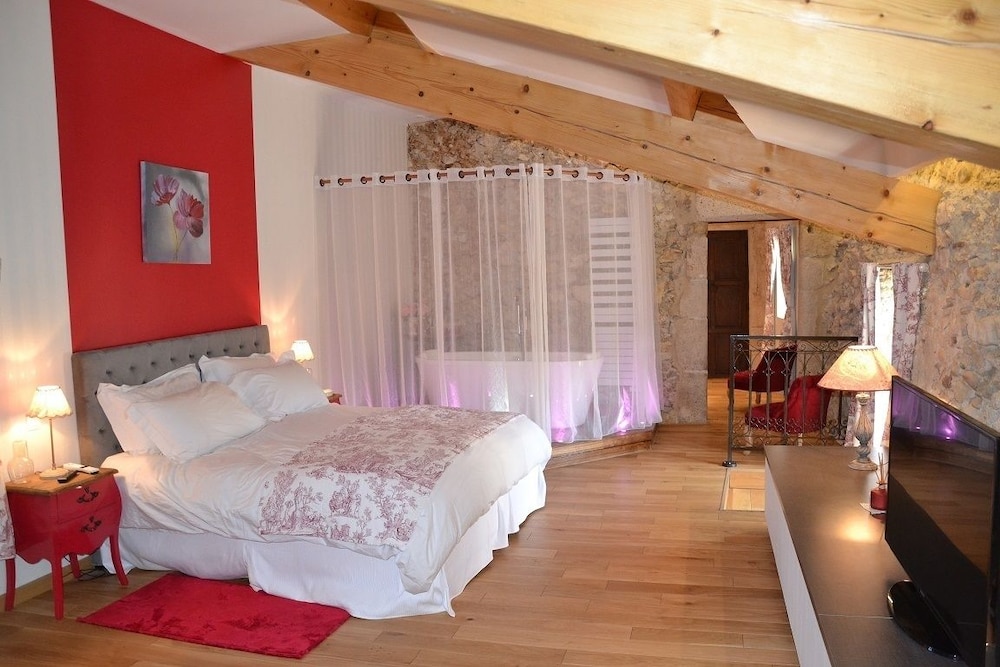 Très belle bâtisse, accueil très chaleureux et professionnel,bel endroit pour une halte en couple. Chambres très spacieuse et très bien équipée. On regrettera la proximité de la route (bruit surtout le matin), que le minibar n'était pas branché à l'arrivée, que la piscine soit à 23°, qu'il n'y ait pas de cafetière ou bouilloire pour se faire un thé ou un café et qu'il n'y ait pas de choix pour le dîner (bien qu'il soit succulent et bien servi)