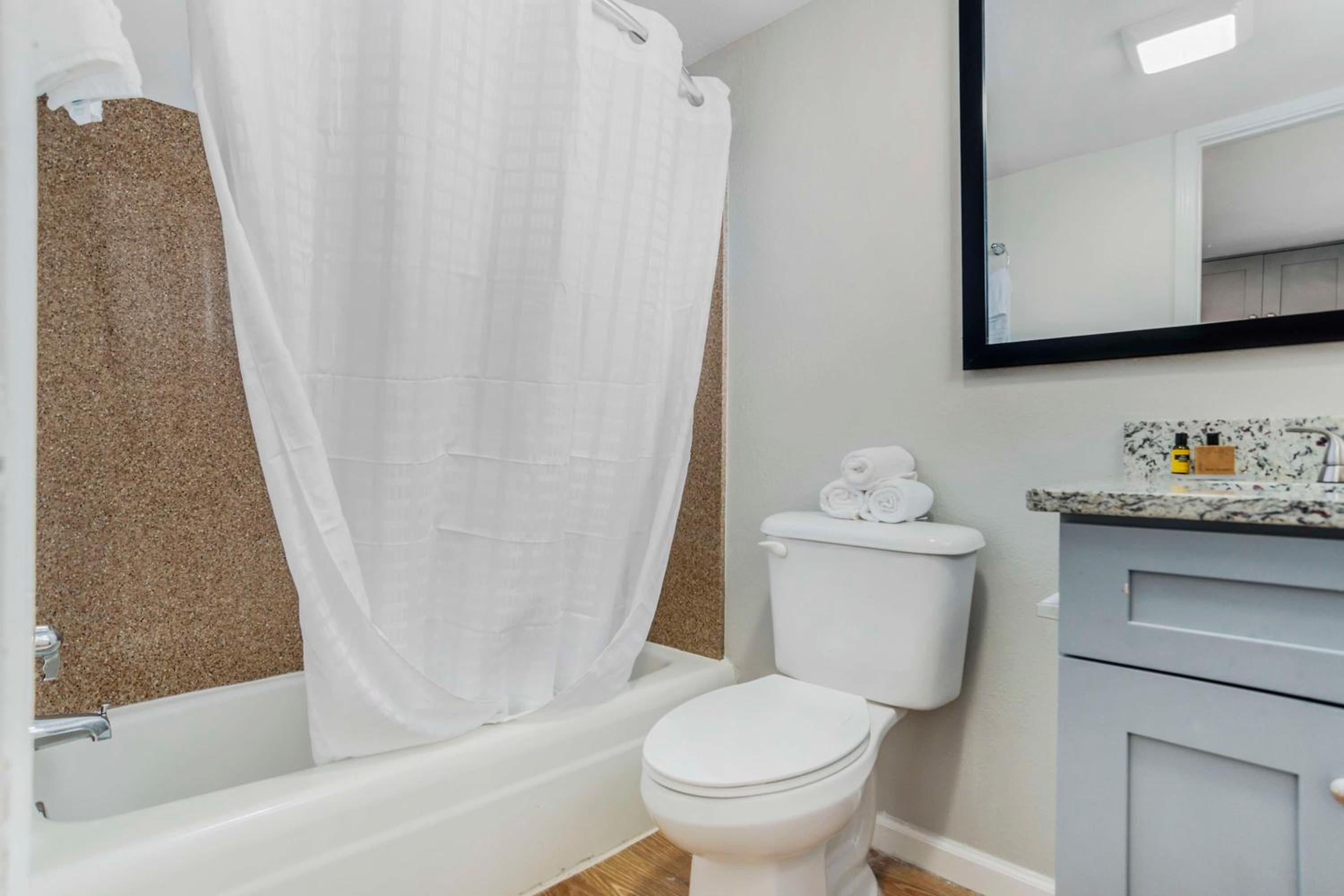 I didn’t like that the shower leaked, I seen water spots all over the ceiling. The bathroom wasn’t the cleanest & I killed 2 roaches in the room.