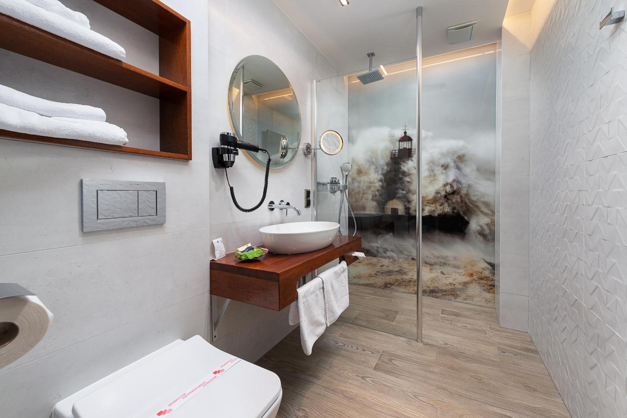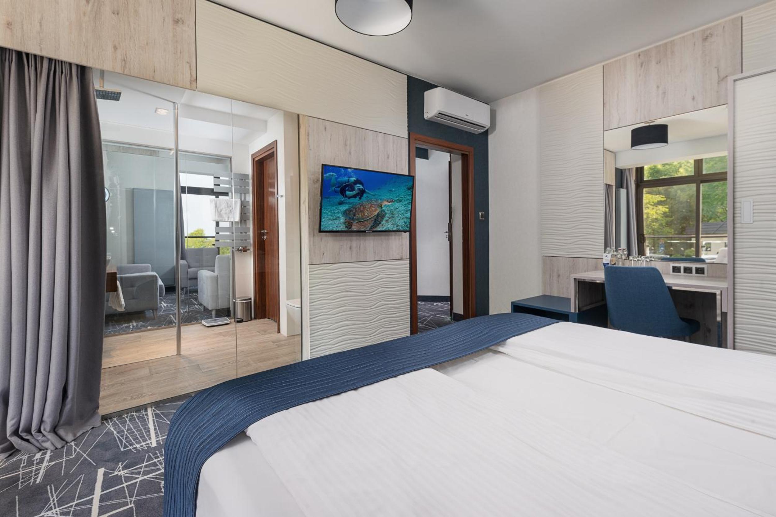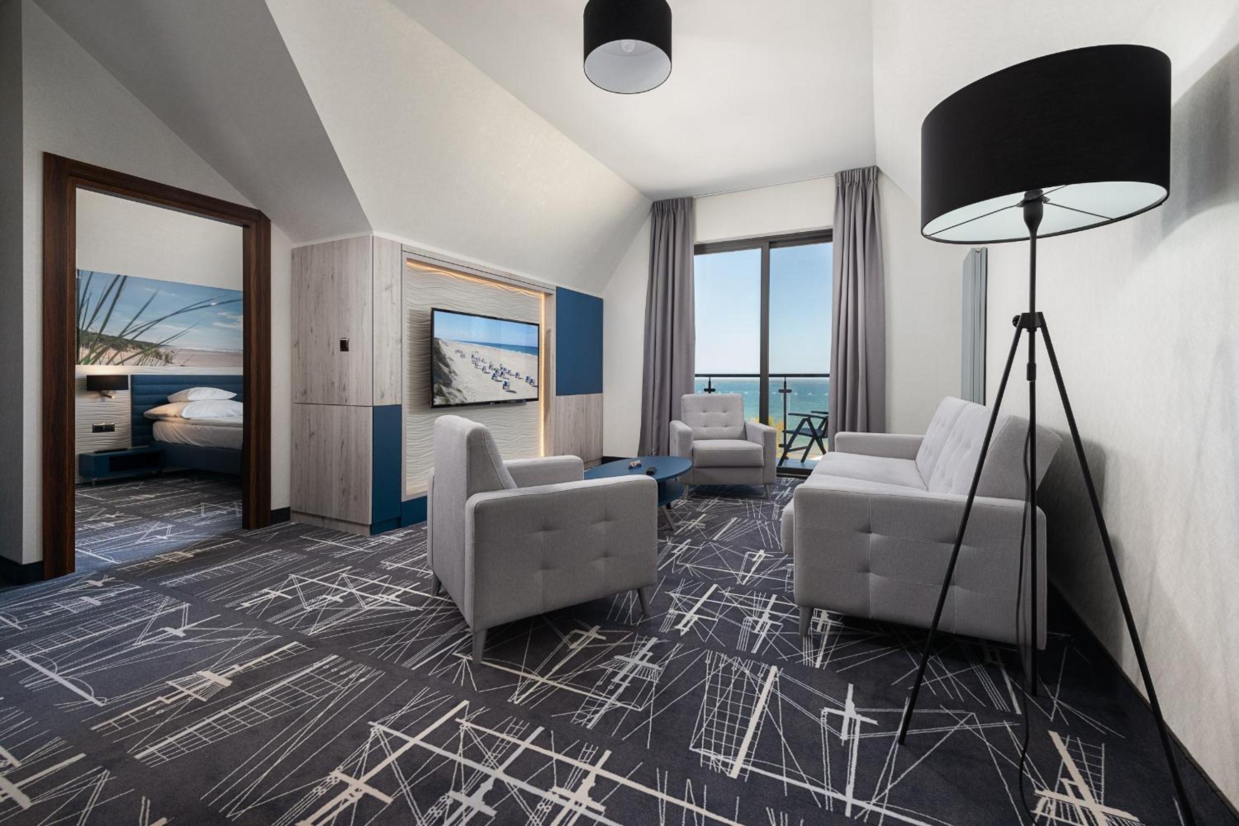 Hotel Restauracja Faleza offers spacious rooms with free Wi-Fi and stunning sea views. Each room is equipped with a flat-screen TV, minibar, and luxurious hot tub for ultimate relaxation.