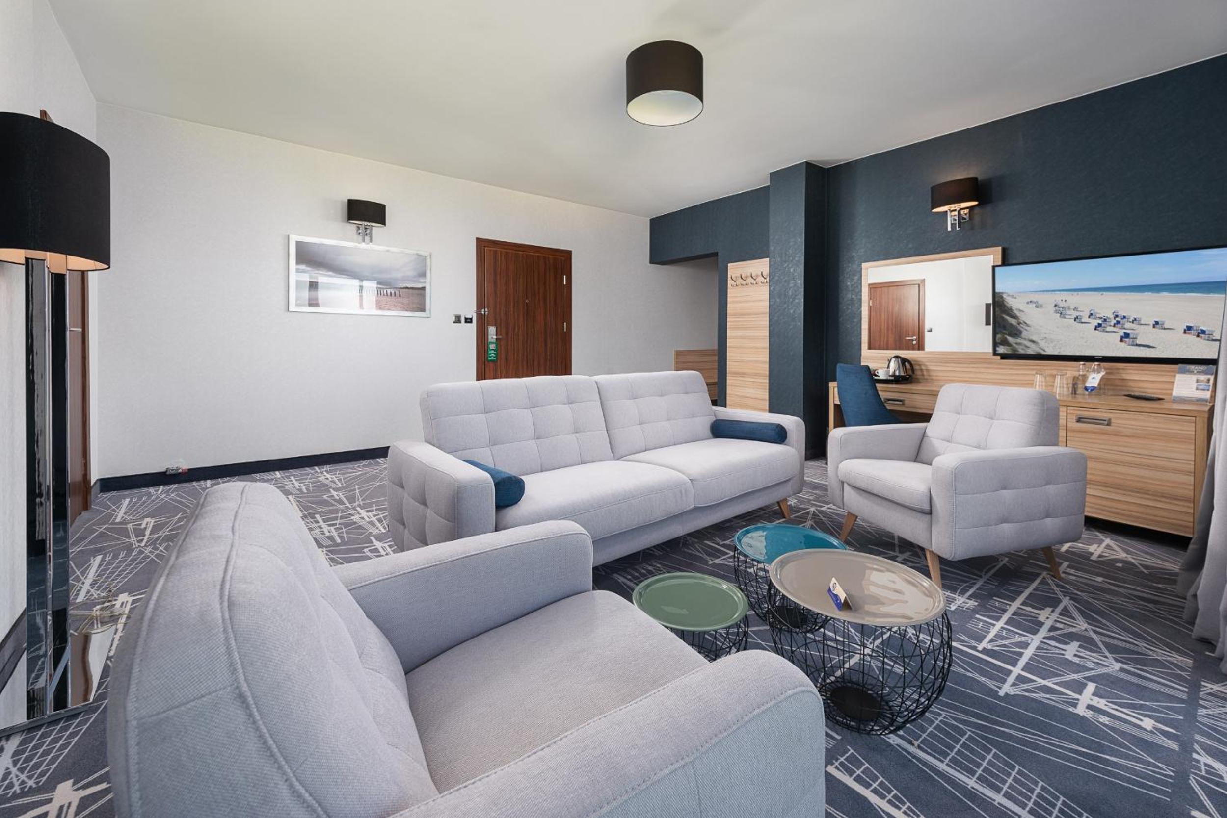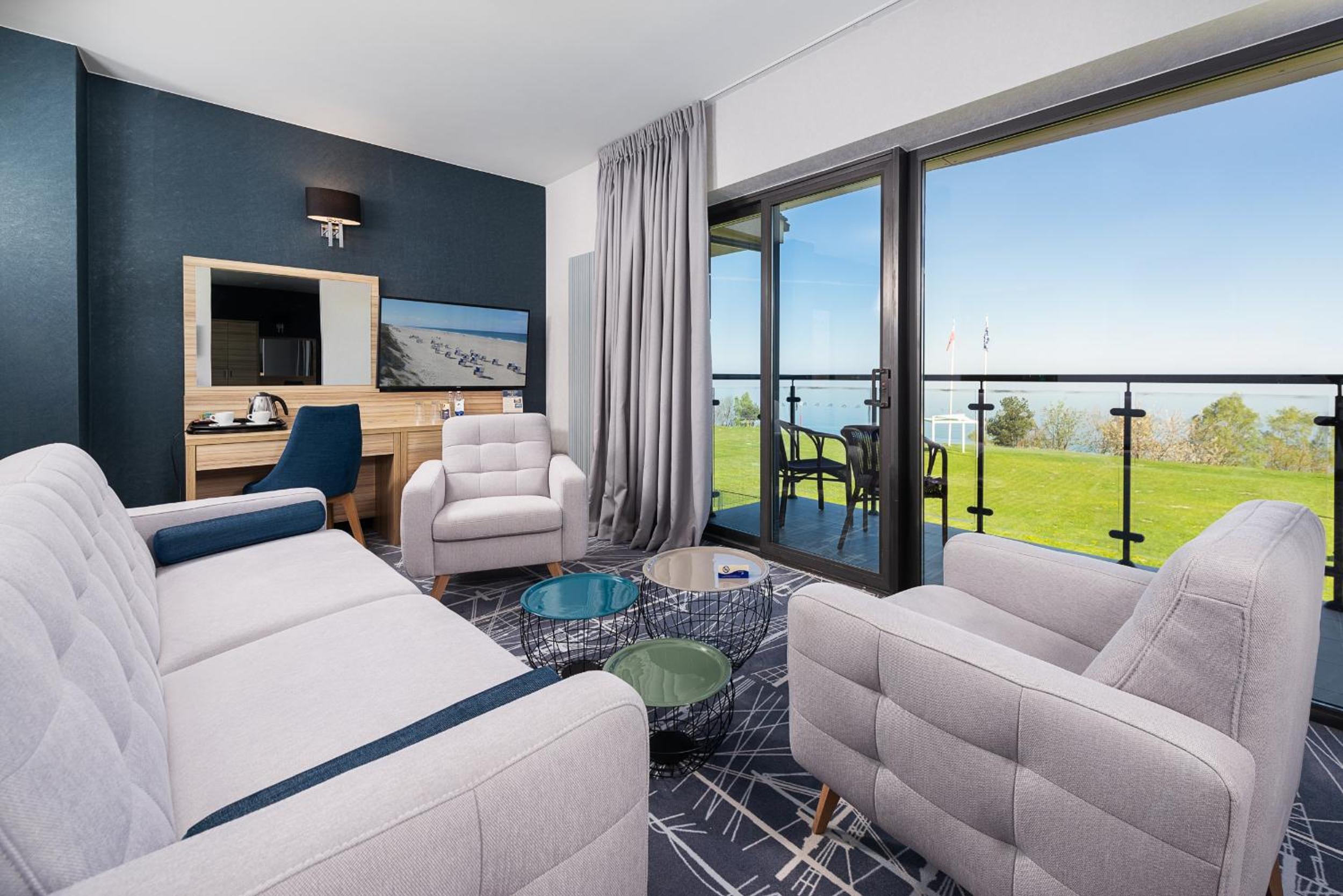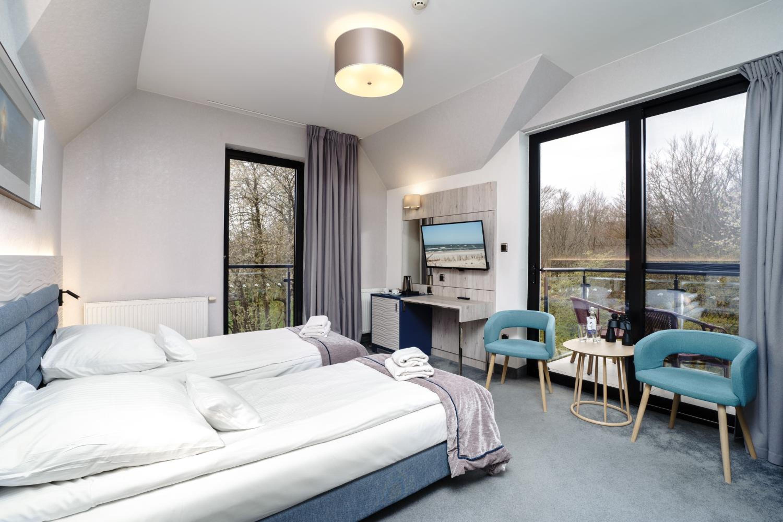Enjoy breathtaking views of the Baltic Sea from the hotel's observation deck, complete with comfortable chairs. Guests can also use the in-room telescope to admire the surrounding area, adding a touch of adventure to their stay.