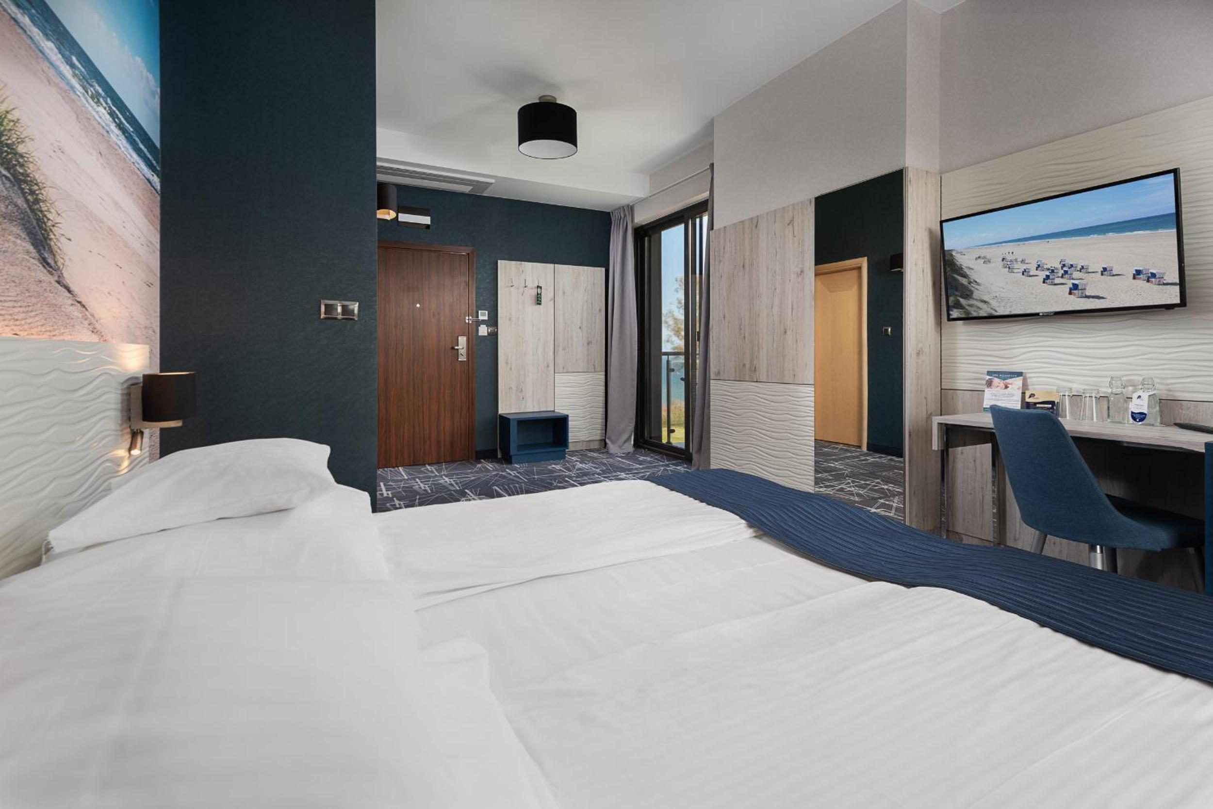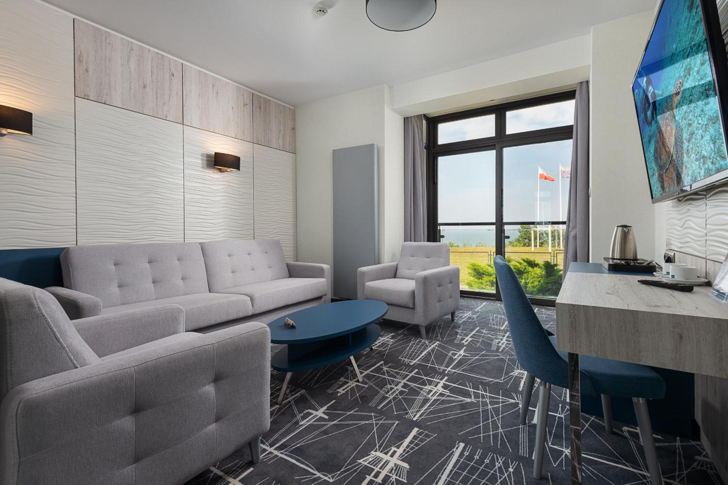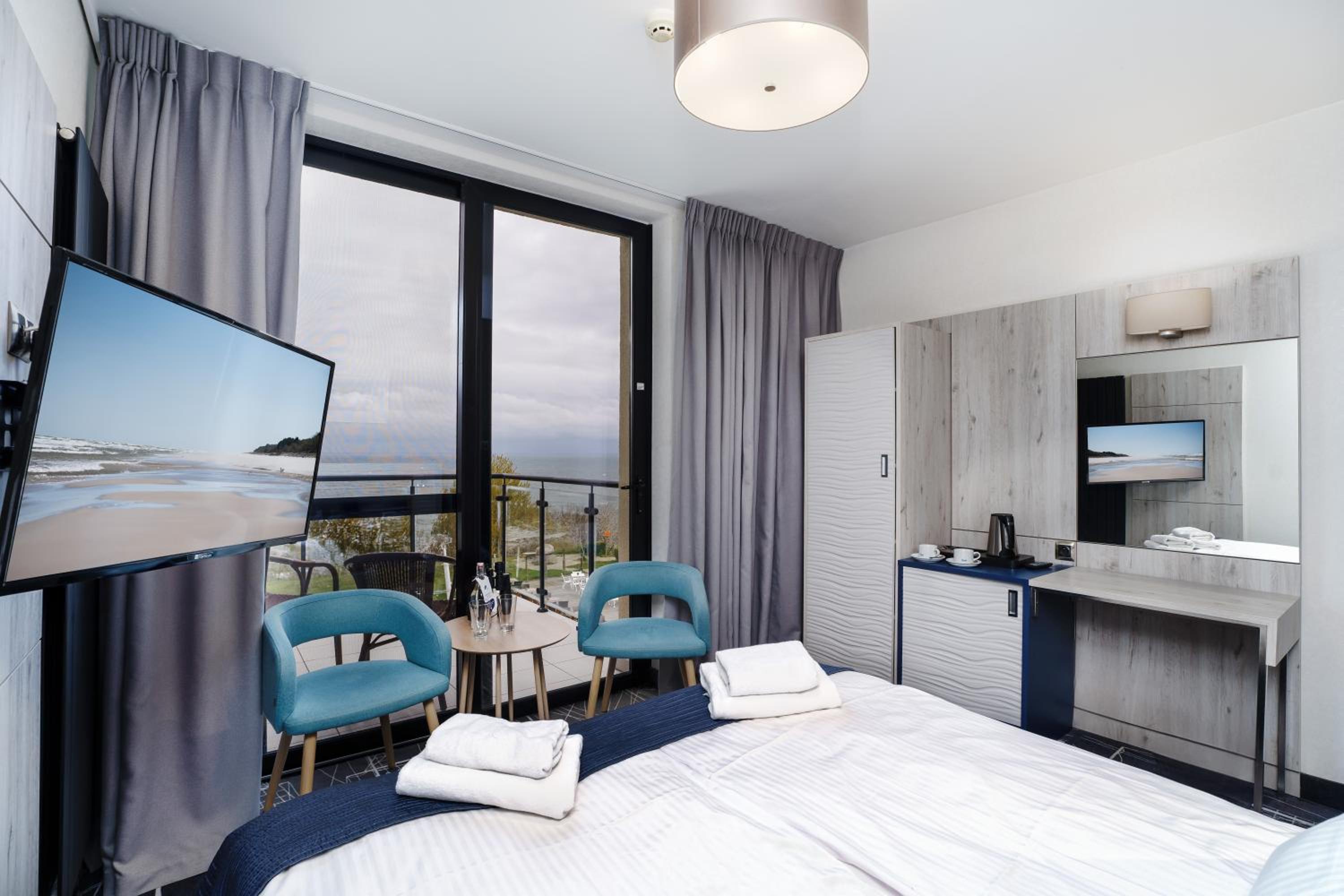 Widok na morze wspaniały przestronne okno dawało taki widok że można było siedzieć przy nim i popijając kawkę napawać się pięknym widokiem , i właśnie o to chodziło , niespodzianka dla żony udana w 100 % Polecam z całego serca