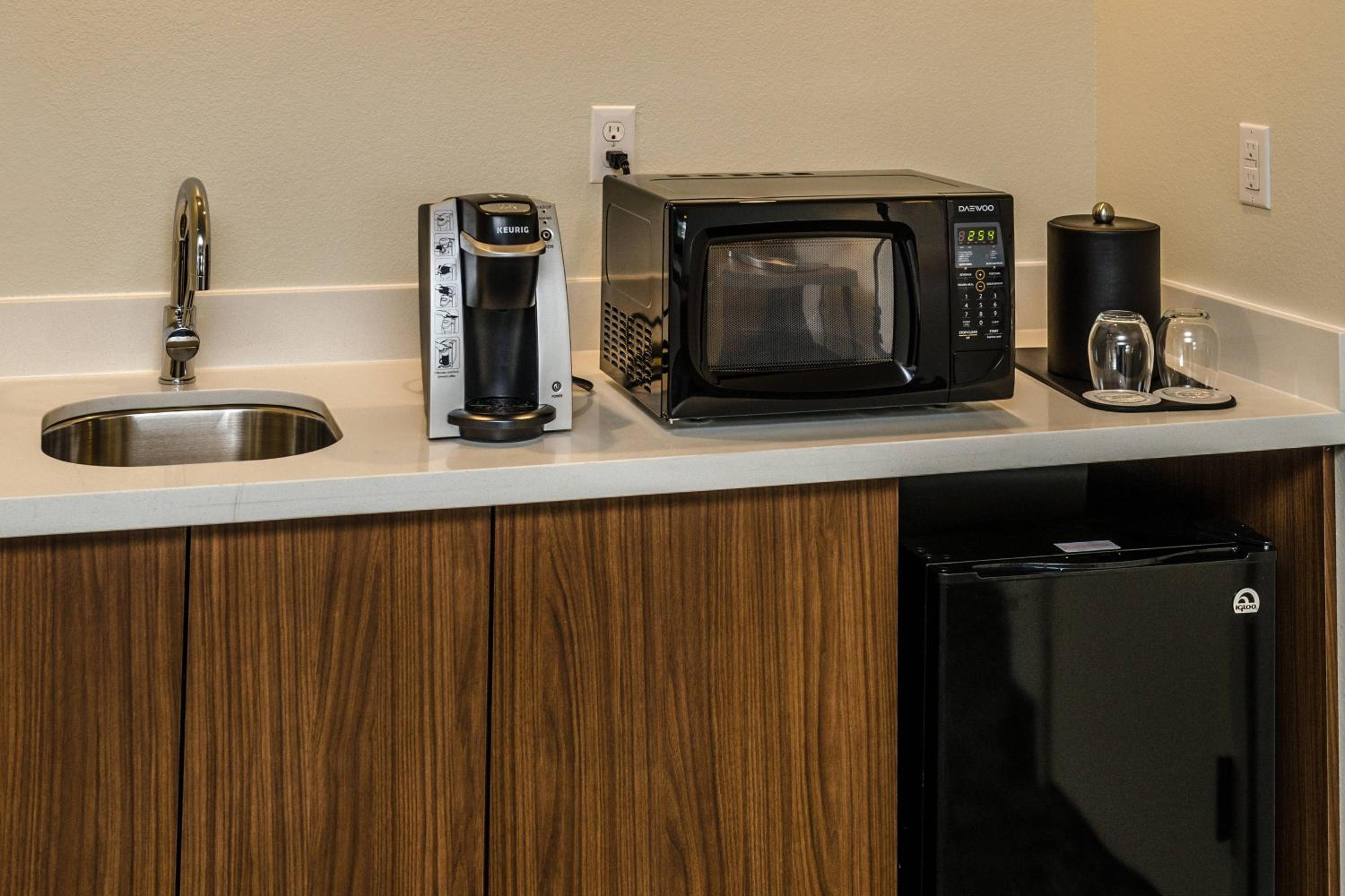 Coffee was either from the Keurig in the room (with limited sugar and cream) or buying Starbucks.