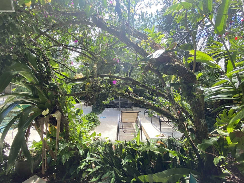Absolutely stunning interior grounds. Don’t let the outside fool you. Not crowded even when the hotel seemed fairly full. Excellent staff and the hot pools are worth the price of accommodations. We will definitely be back next time we are in La Fortuna, hasta proxima!