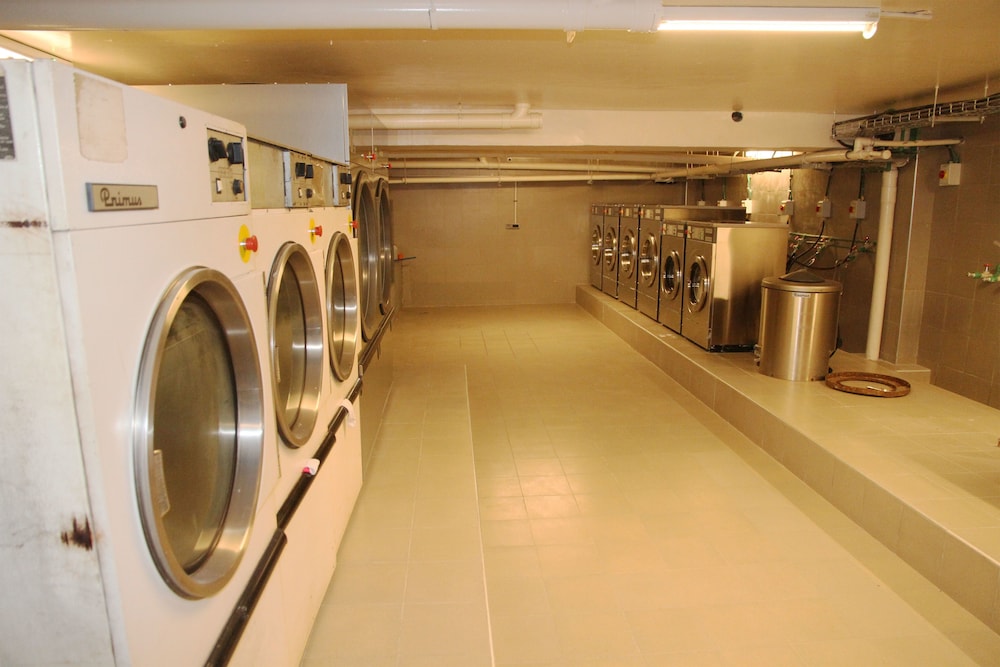 Laundry is ridiculously expensive. Since these are serviced apartments, providing a coin-operated laundry machine will show that they somehow care for their long stay family customers.