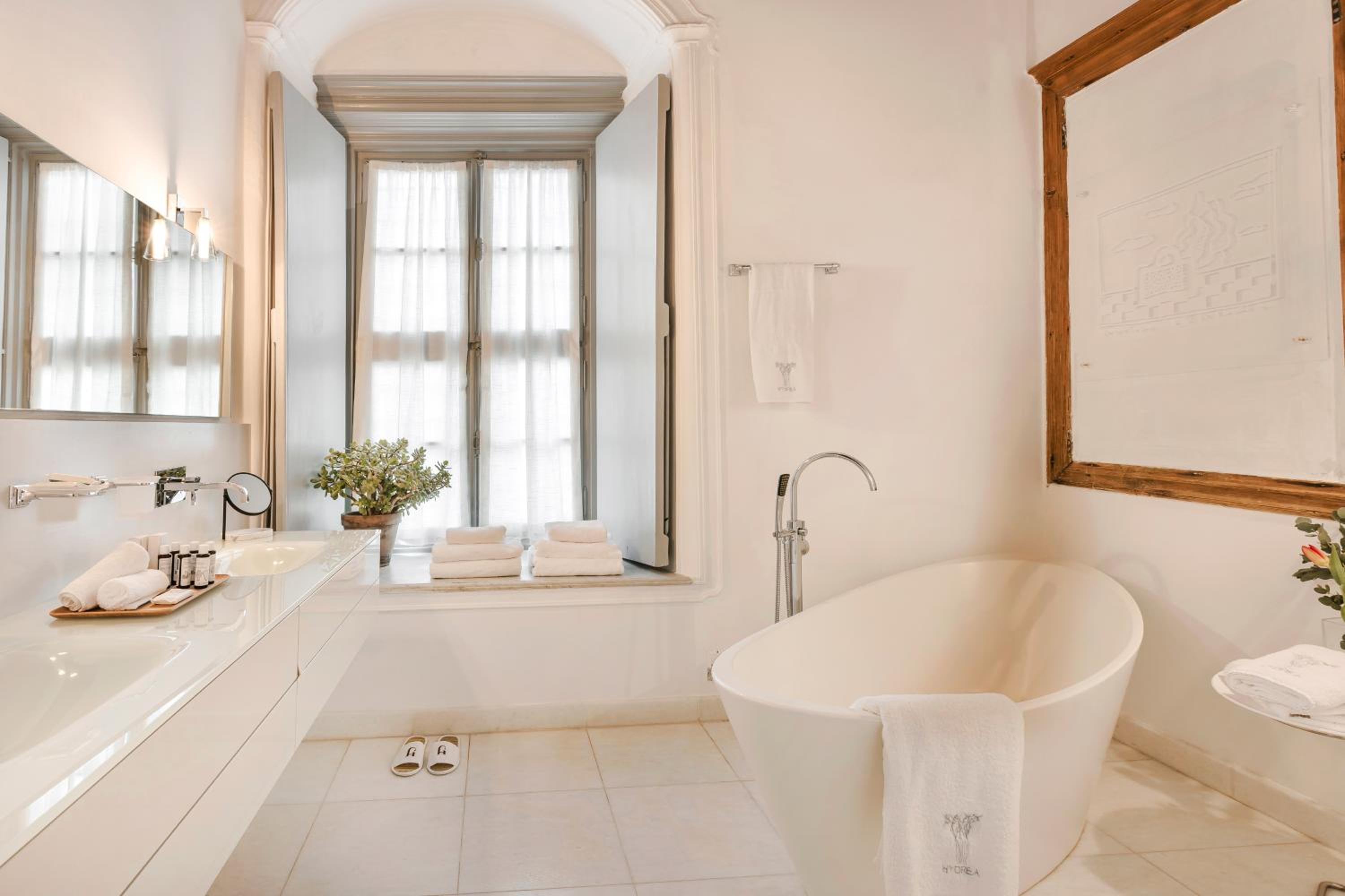 Step into a blend of traditional architecture and modern décor at Hydrea Hotel. Each room offers beamed ceilings, premium furnishings, and soothing colors, with some providing stunning panoramic views of Hydra Town and Port. Relax in the modern bathrooms featuring a bathtub, spa bath, or shower, and enjoy amenities like a fridge, slippers, and free toiletries.
