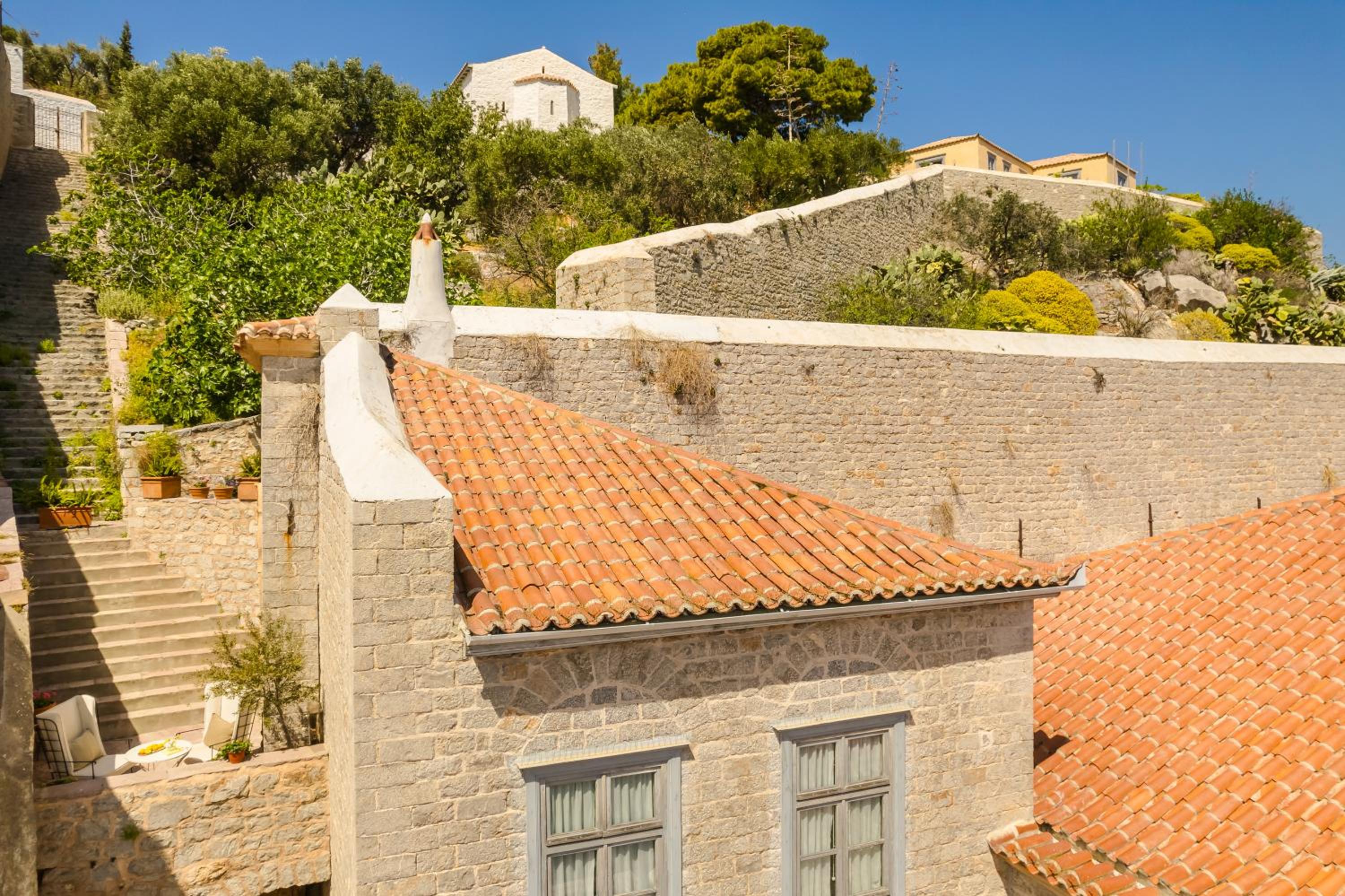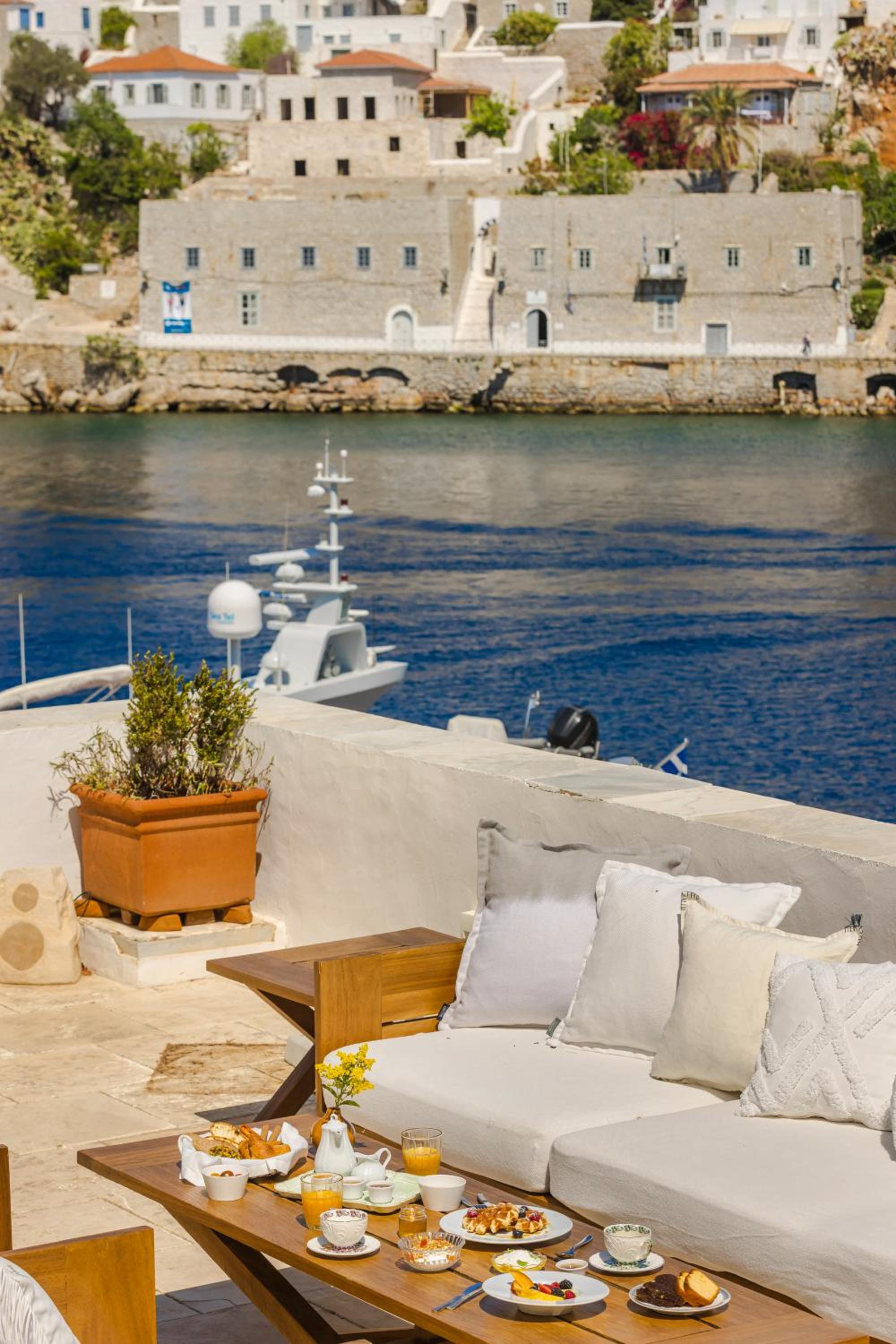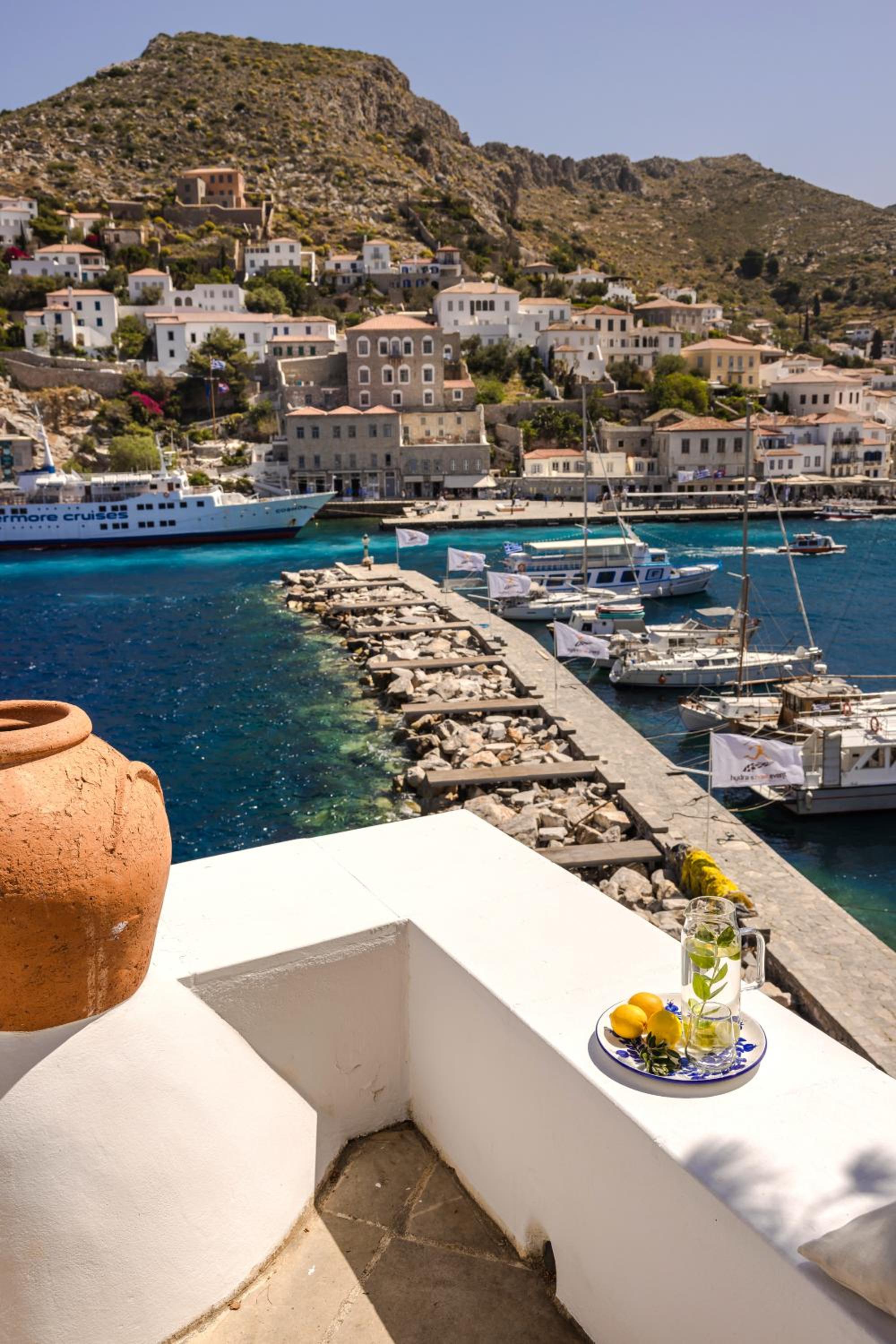 Hydrea Hotel is a stunning, high-end property right on the port of Hydra. The view from the terrace is incredible, overlooking the harbor and town. The location is unbeatable—you’re just steps from all the restaurants and shops.