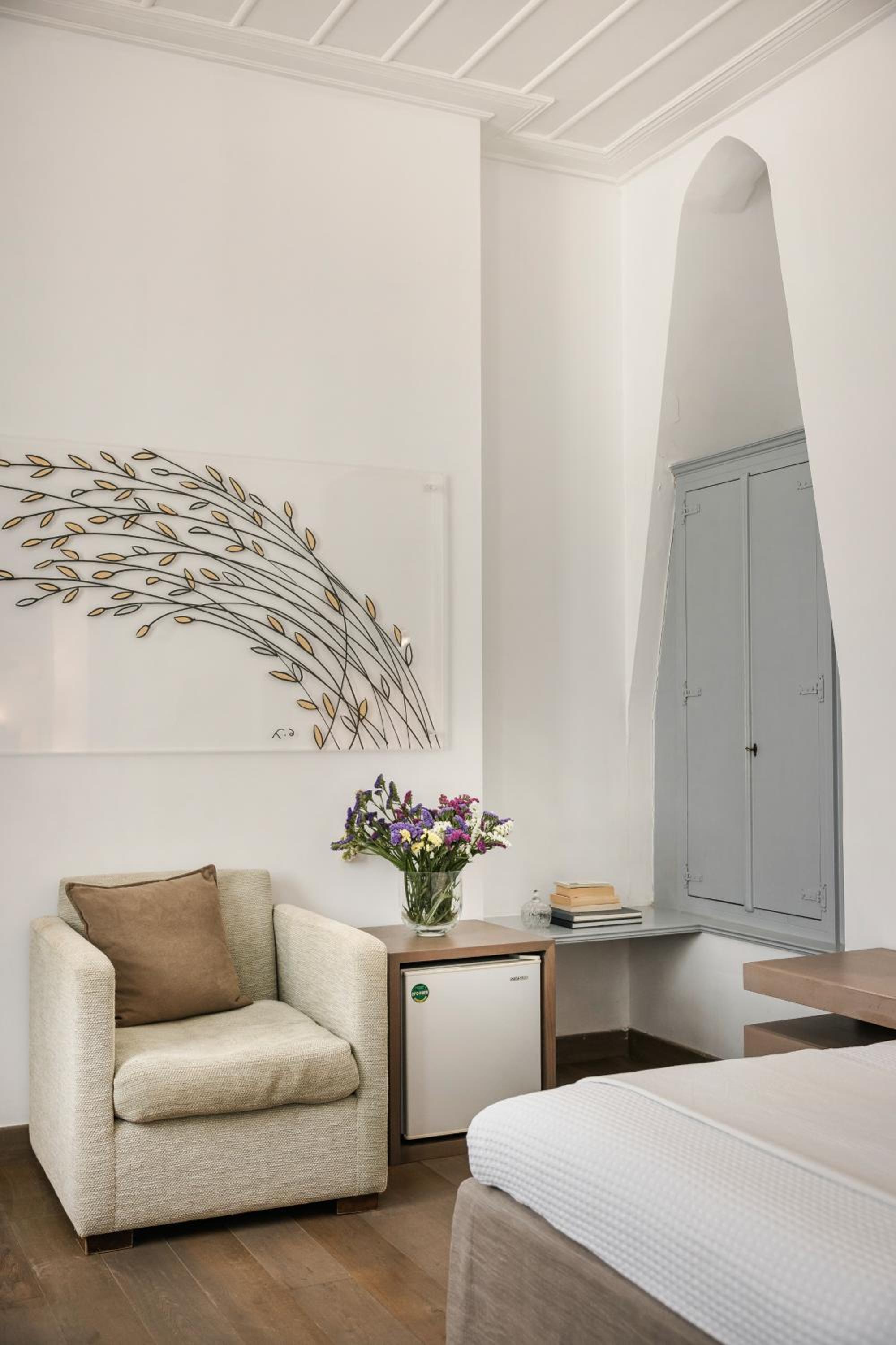 Really enjoyed my stay here. And I did have an absolutely fabulous room with its expansive terrace overlooking the sea and marina. So special. My one suggestion is that the bed mattress possibly be replaced with one that is newer/more comfy. In general, I loved all that the hotel has to offer... including an easy walk to the Spilia restaurant where there are rocks and a ladder from which one can slip down into the sea. I did this as a nice morning swim. Lovely.