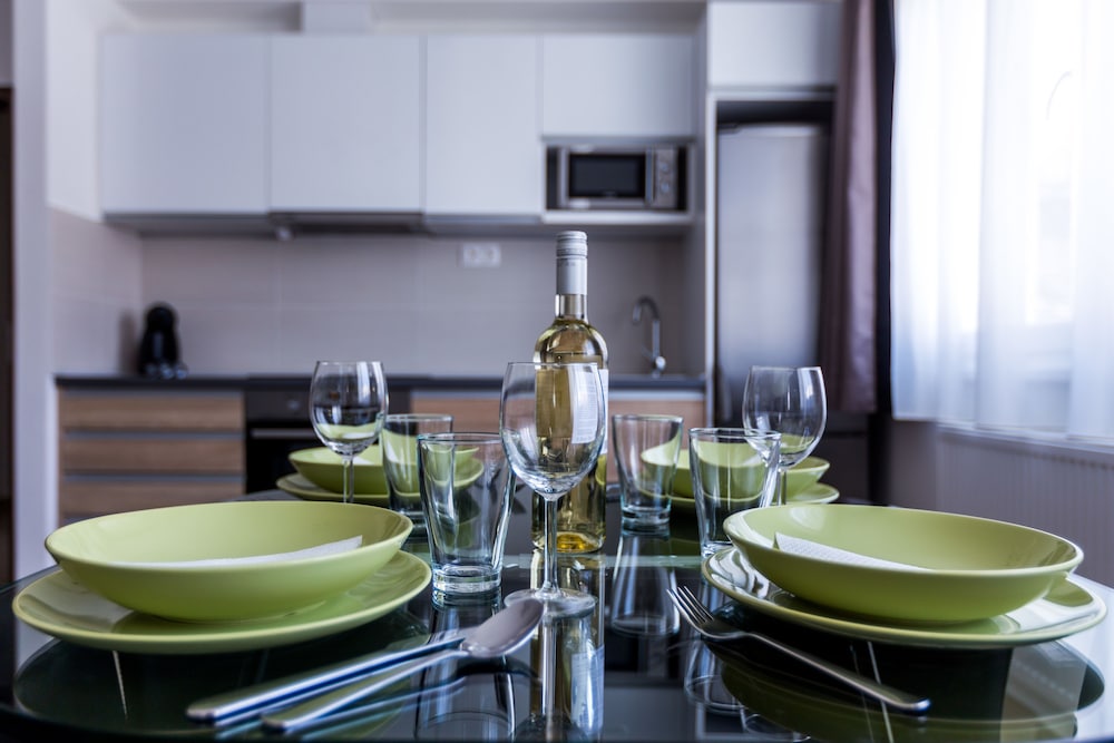 This was our third time we stayed at this place for the last three years. We stayed at Superior 1Bedroom apartment, enough for 4 people. Rooms always clean and spacious, and has everything we need for 3-4 nights - iron with ironing board, bedding, towels, shower gel, soap, hair drier. Central heating. Kitchen was fully equipped with all you need if you wish to cook. Fridge was very clean, washing machine.. It was quite during our stay.
