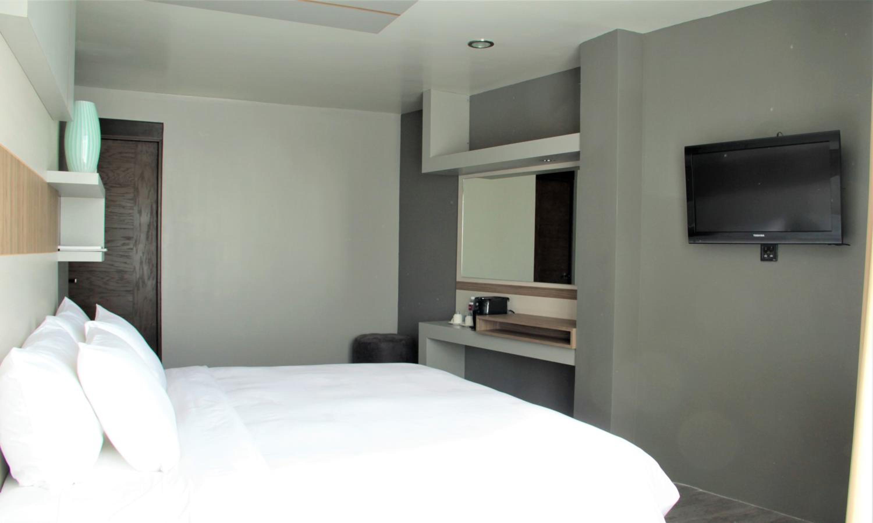ESDUMA HK HOTEL Pachuca offers elegant rooms with modern amenities, including free WiFi and air-conditioning. Each room comes with a private bathroom, flat-screen TV, and a safety deposit box for your convenience. The hotel ensures a comfortable stay with quality bed linen and towels provided in every room.