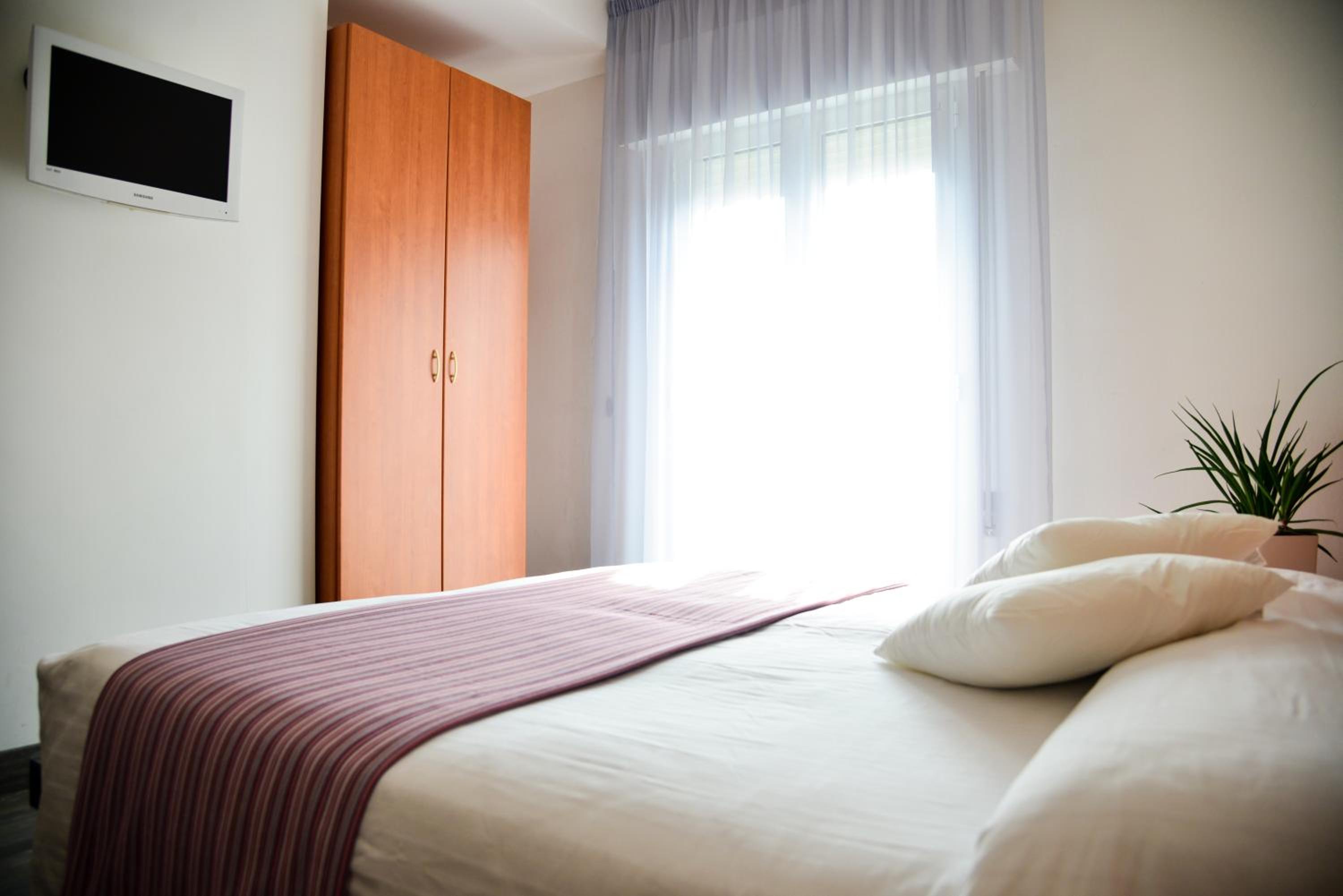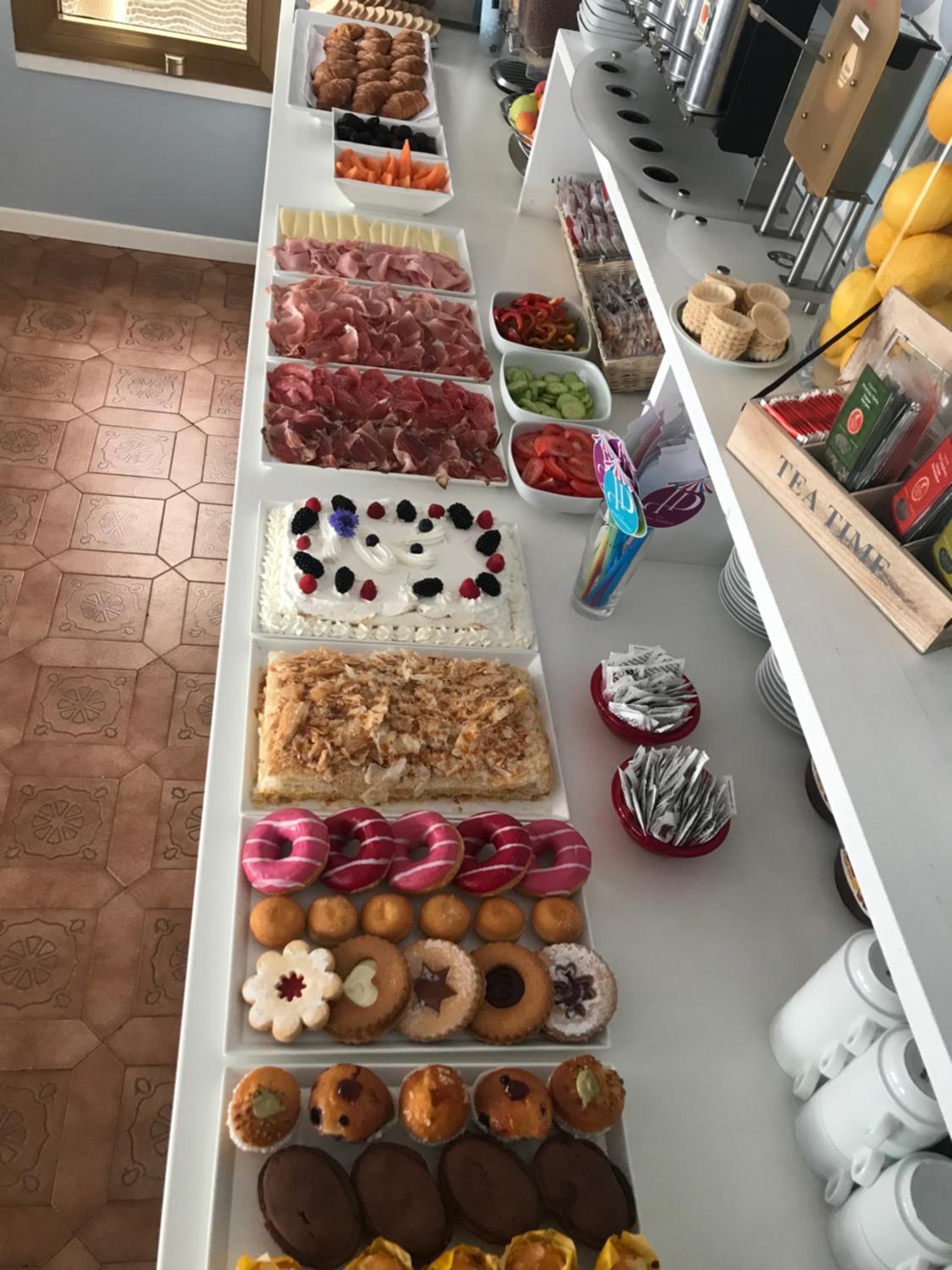 Sniadanie jak na włoskie warunki to super . Brakowało mi tylko warzyw . Przystanek przy samym hotelu z którego dojedziesz do promu . Personel bardzo miły .