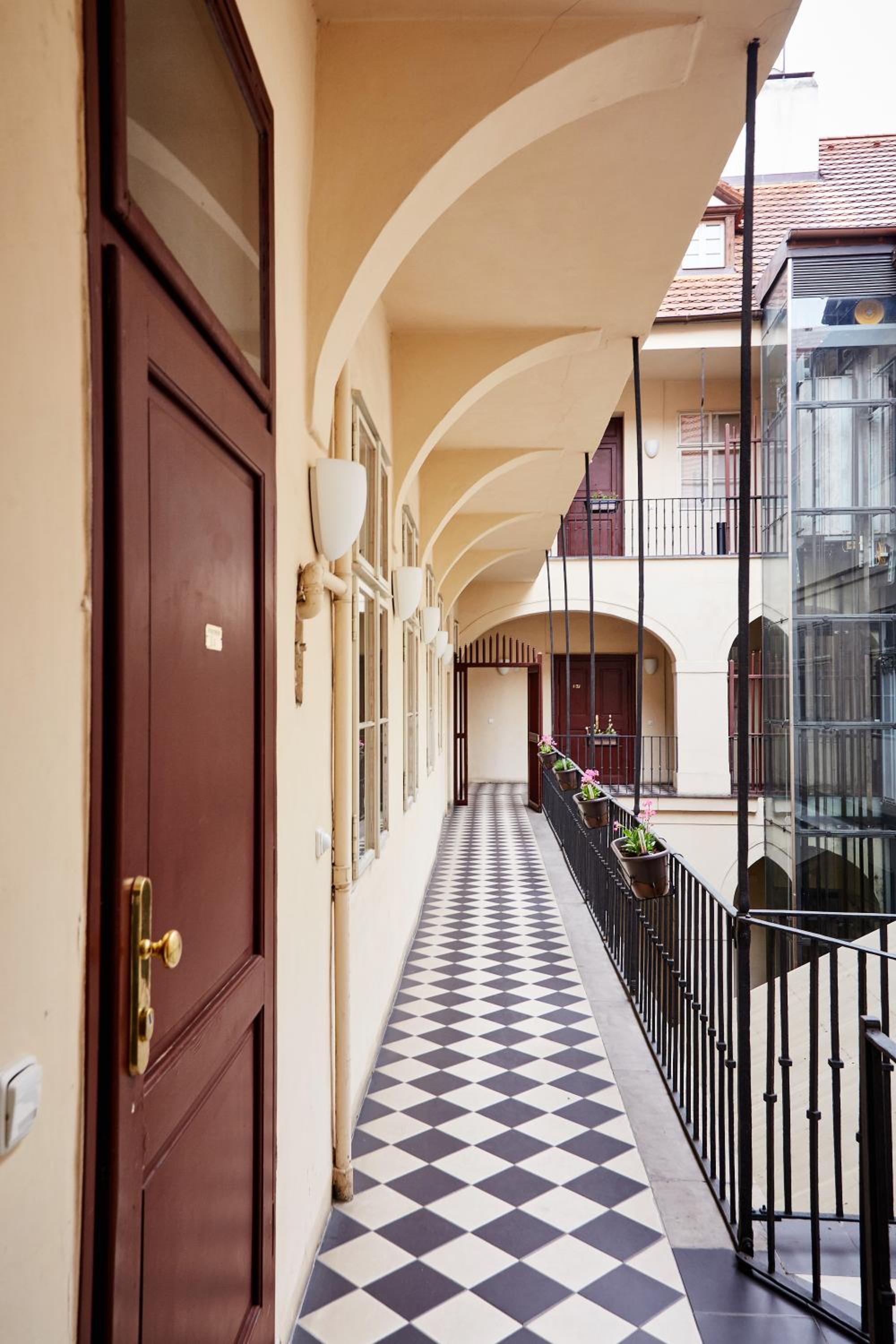 Experience the charm of Prague in a historic building with modern amenities at Three Golden Crowns Apartments. Enjoy free WiFi and a private entrance in this sustainable 3-star aparthotel located near iconic landmarks like Prague Castle and Charles Bridge.