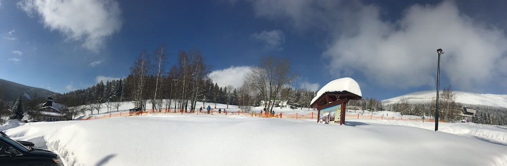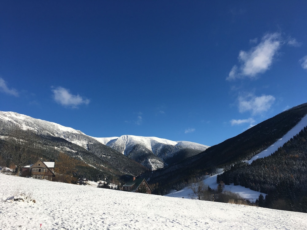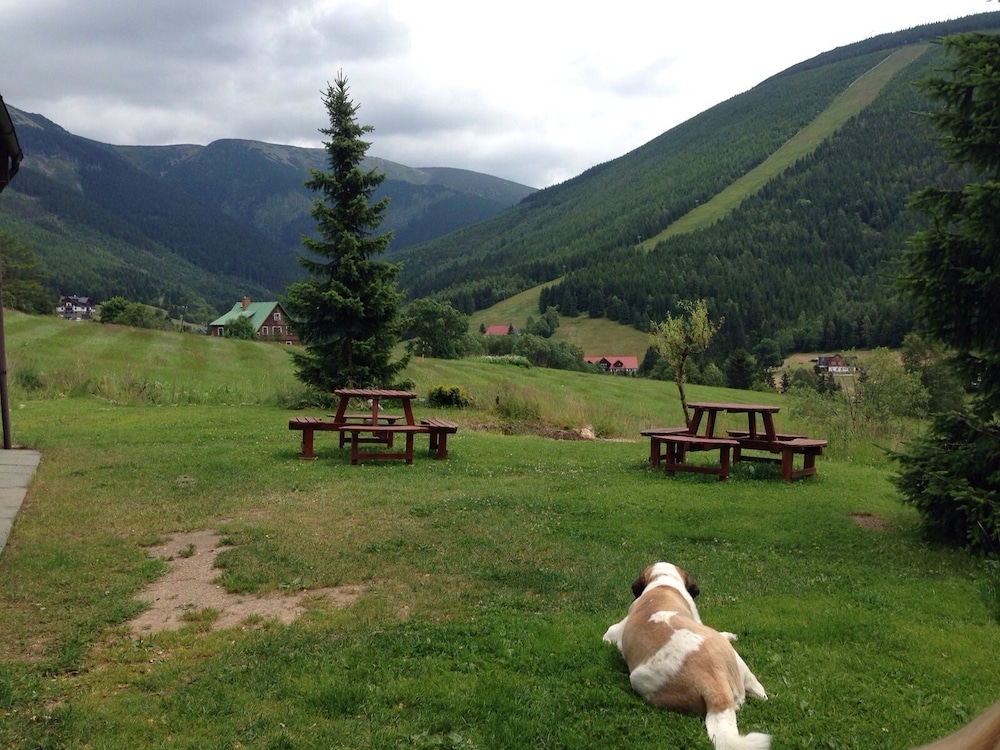 This small hotel is located approximately one kilometer from the center of the Spindleruv Mlyn. The hotel has a beautiful view of the mountains. The hotel has on offer "stay package" for two nights with half board, afternoon coffee and cake, one hour whirlpool and mini-golf. Whirlpool and afternoon cake was perfect, the other food was also good. Our room was small but nicely furnished and had a nice and clean bathroom. The hotel is certainly suitable for summer holidays, because it provides good service and is a good starting point for various trips.