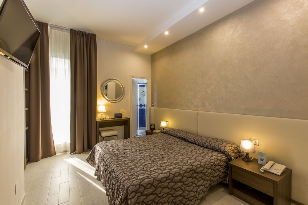 È un albergo molto carino a 100 mt dal mare e in pieno centro,la posizione è ottima , le camere confortevoli. Pulite. Ben ristrutturato, il bagno nuovo , non grandissimo ma ci si gira bene ,la nostra camera era un po piccola ma confortevole, la cucina davvero ottima , per la colazione il Buffett era fornito ,dalle brioches alle torte ai biscotti, frutta e anche il salato e anche per la cena il buffet era ben fornito, i piatti serviti ottimi e ben presentati .Devo dire che non ho mai trovato in un tre stelle questo livello..sicuramente ci ;tornerei