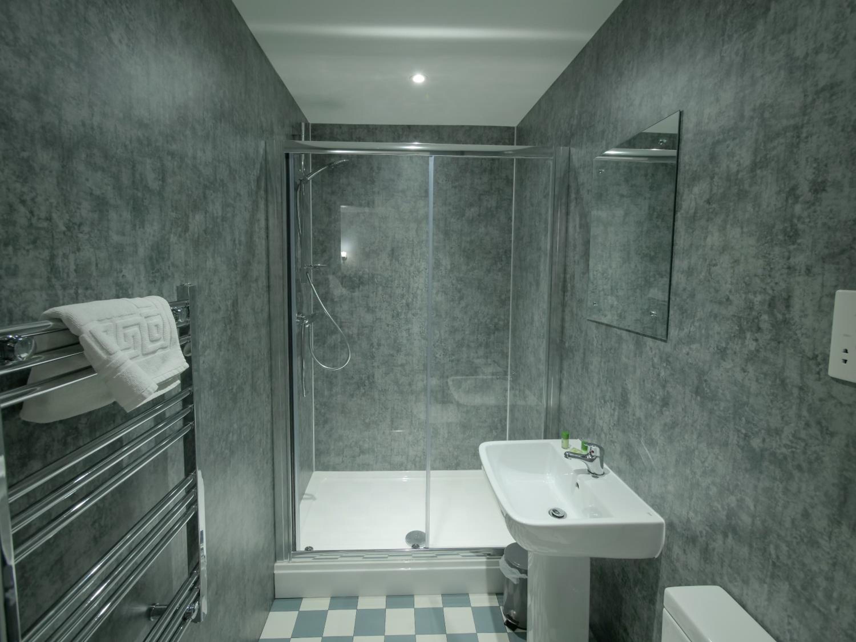 showed to room by very friendly staff.. nice clean room with a big comfy bed ! nice modern bathroom, shower had good water pressure. provided little tray of breakfast goodies which was lovely ! very close to the centre and near to bars and restaurants.
