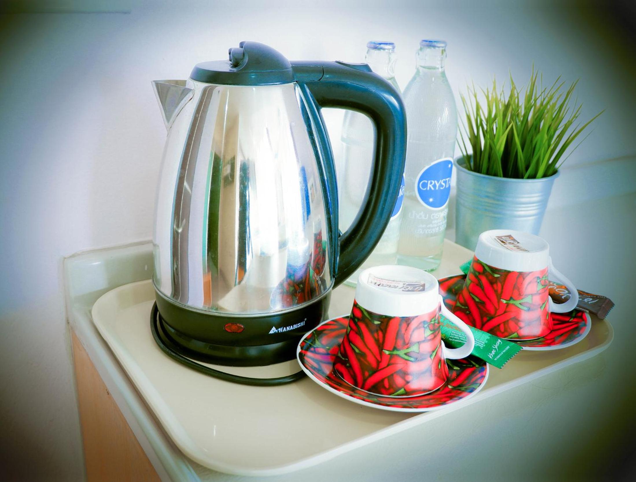 Should have hot water for coffee and coffee in the room