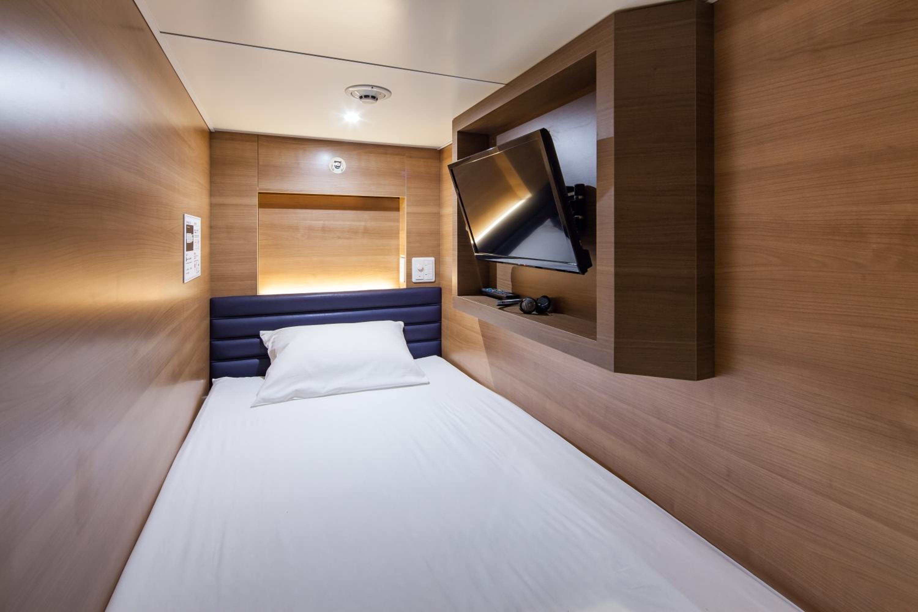 Experience comfort in our non-smoking capsule units equipped with flat-screen TVs and complimentary amenities.