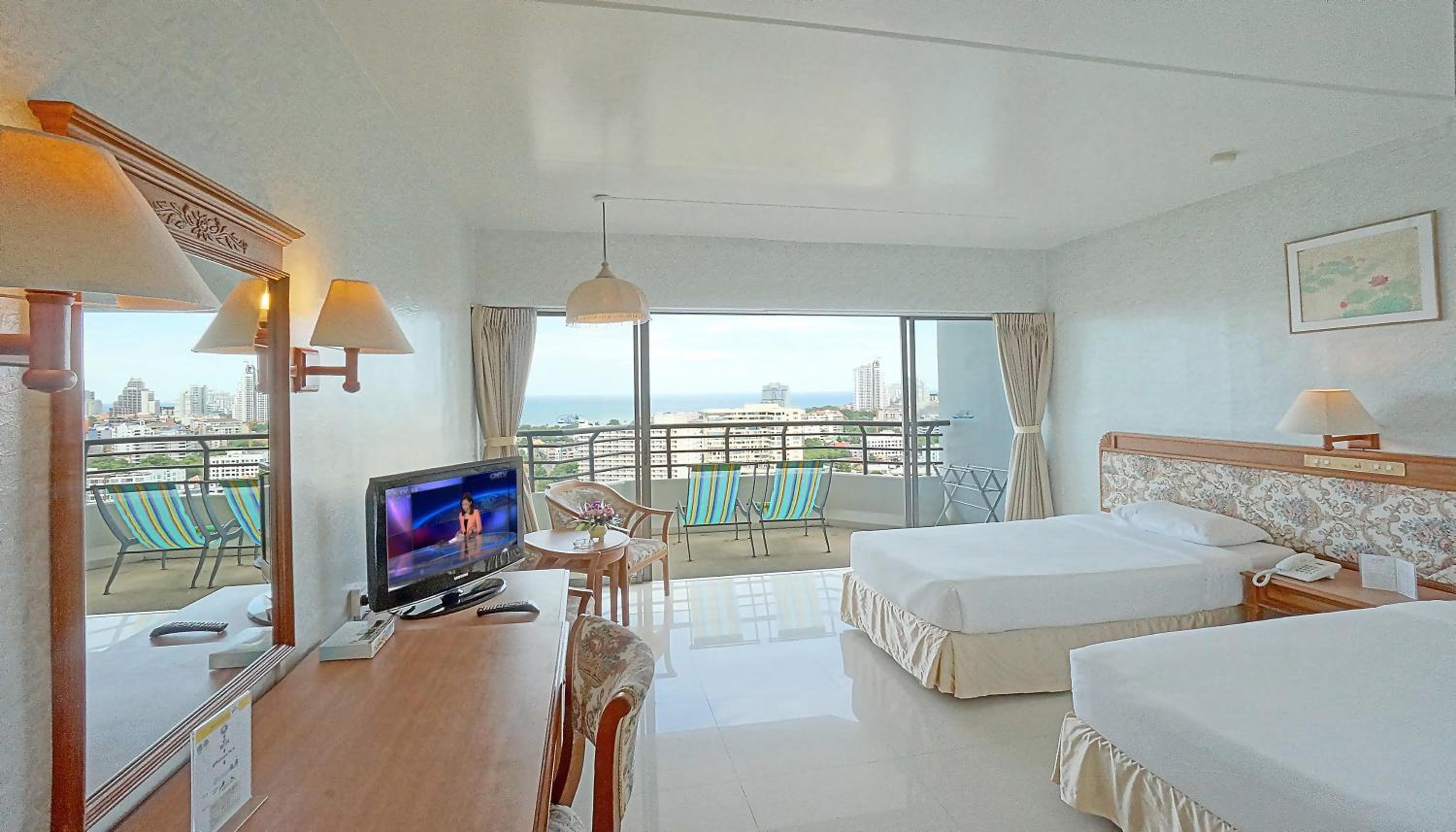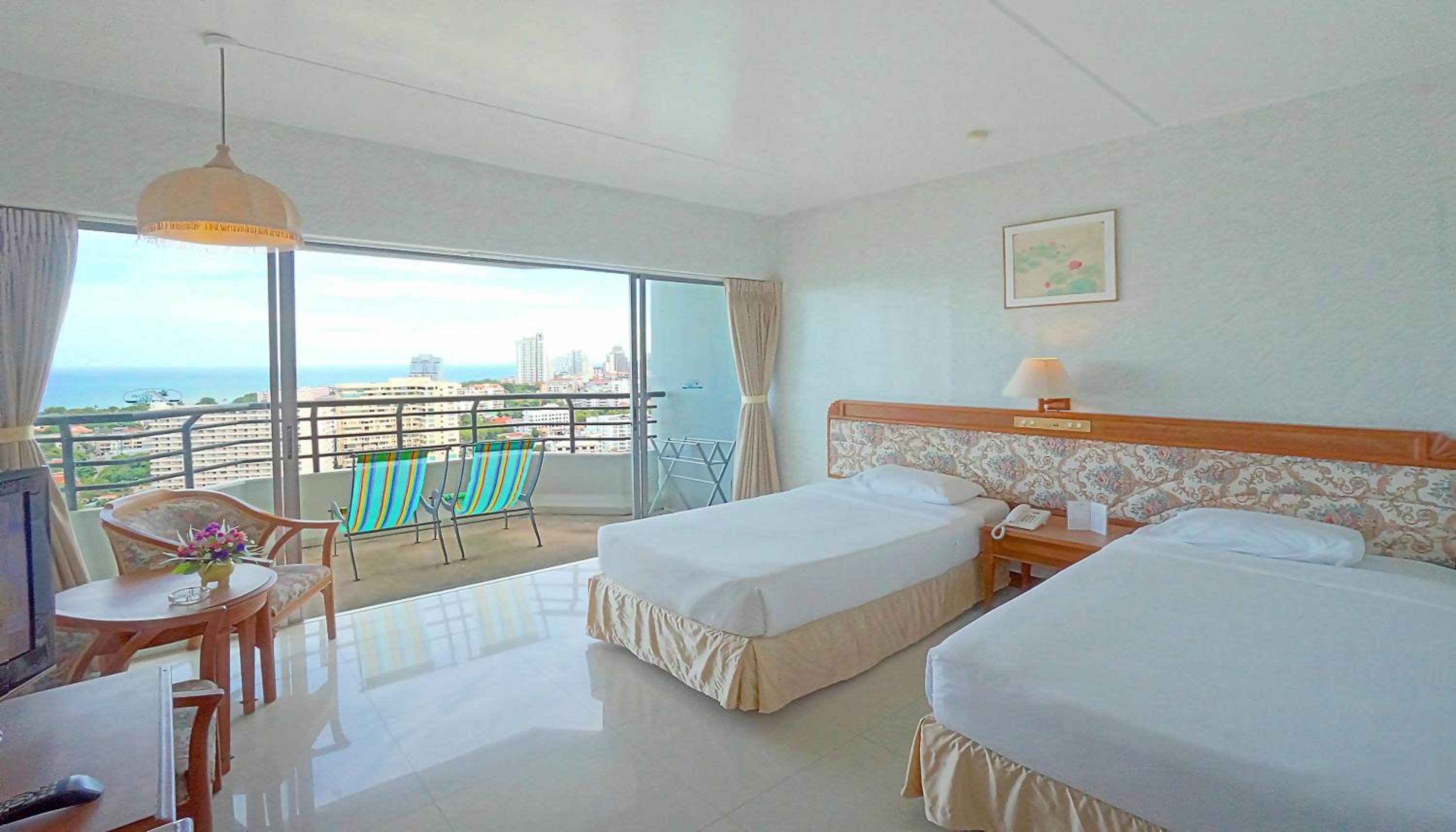 Luxurious Accommodations: Each room at Pattaya Park Beach Resort is equipped with a flat-screen TV and a cozy seating area. The en suite bathrooms feature both a bathtub and shower for ultimate relaxation.
