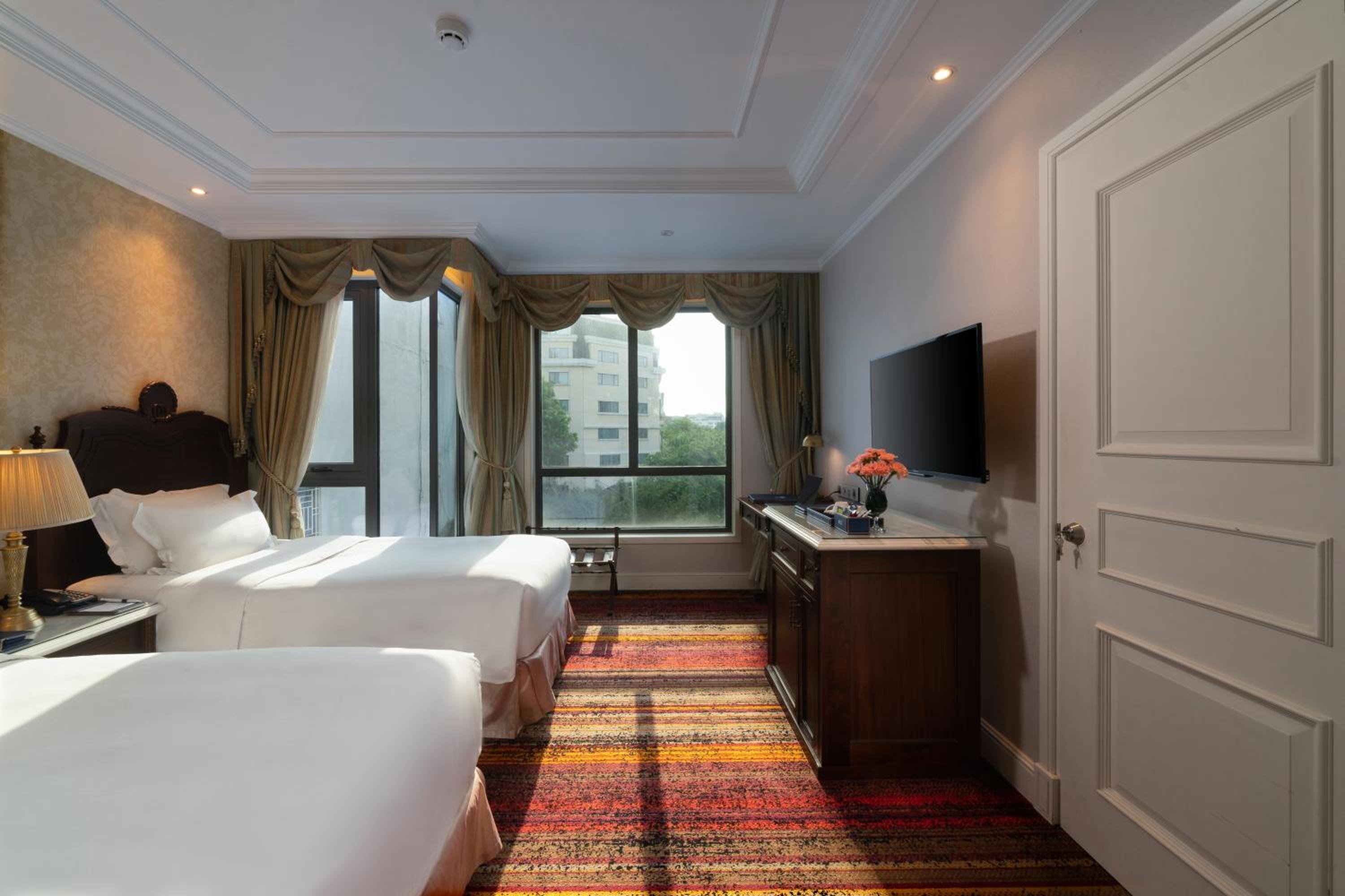 The Lapis Hotel in Hanoi offers a luxurious stay just steps away from Hanoi Opera House. Each room is elegantly furnished with modern amenities, including air conditioning, flat-screen TV, and a well-stocked minibar. Relax in comfort with plush bathrobes and slippers provided in every room.