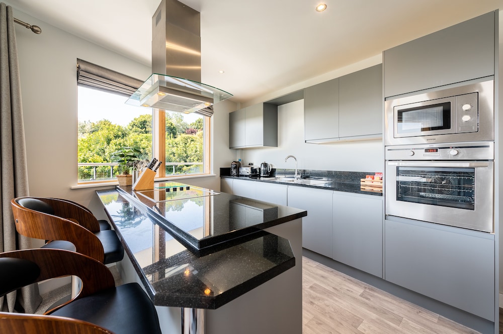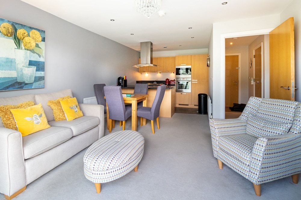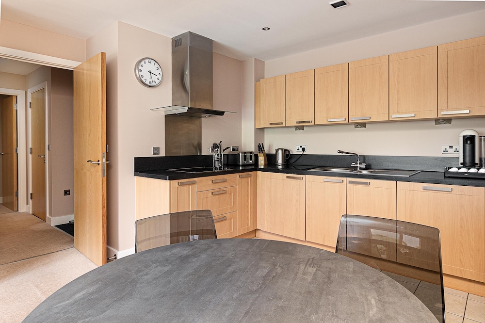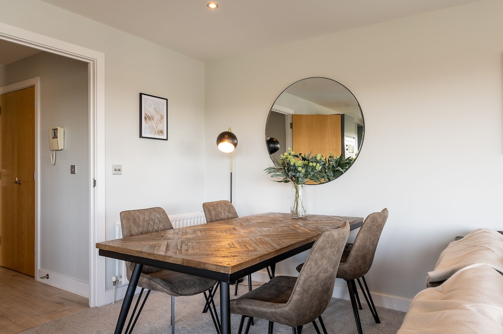 Perfectly comfortable apartment which was well equipped. Nice welcome hamper but only 2 tea bags and coffee pods for a 2 night stay. Close to all Northside attractions and a short bus journey to the busier Southside. I would not be marketing this as a garden view apartment.. it looks onto the multi storey car park with trees beyond that