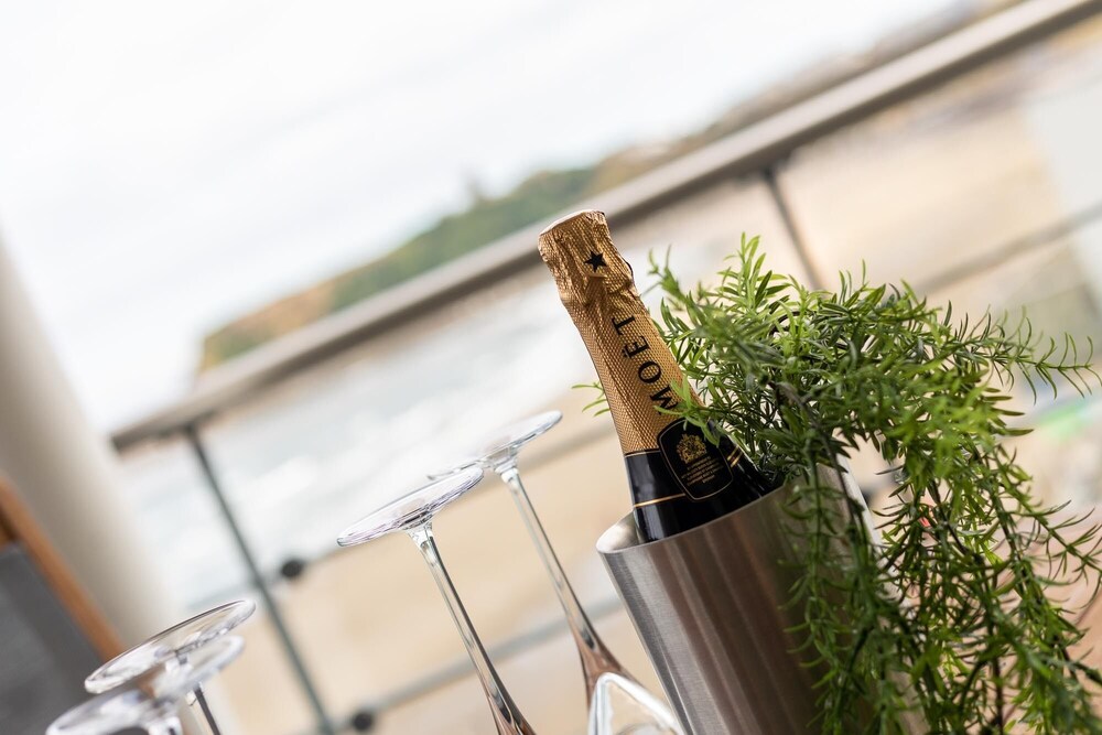 Stunning apartment with lovely sea views with a lovely bar below and various cafes within a minutes walk