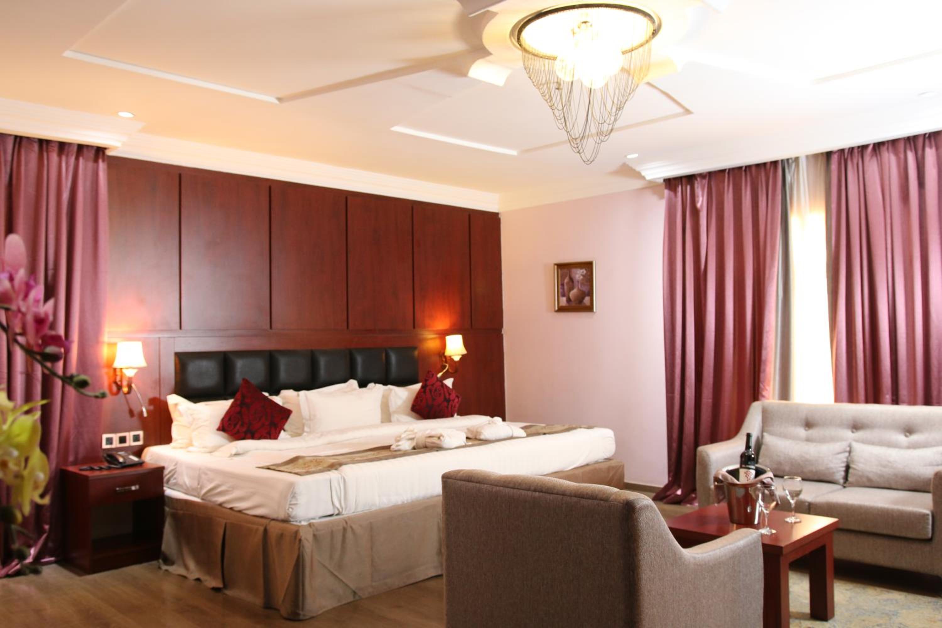 Grand Pela Hotel & Suites in Abuja offers free WiFi and a range of amenities including a spa and fitness center. Guests can unwind at the bar or enjoy the comfort of a flat-screen TV with cable channels in their rooms.