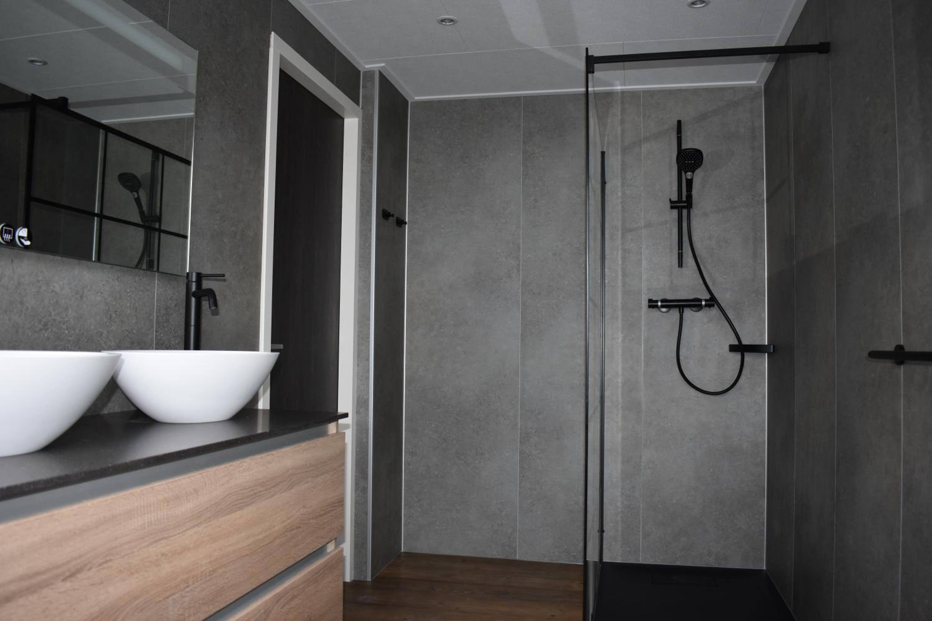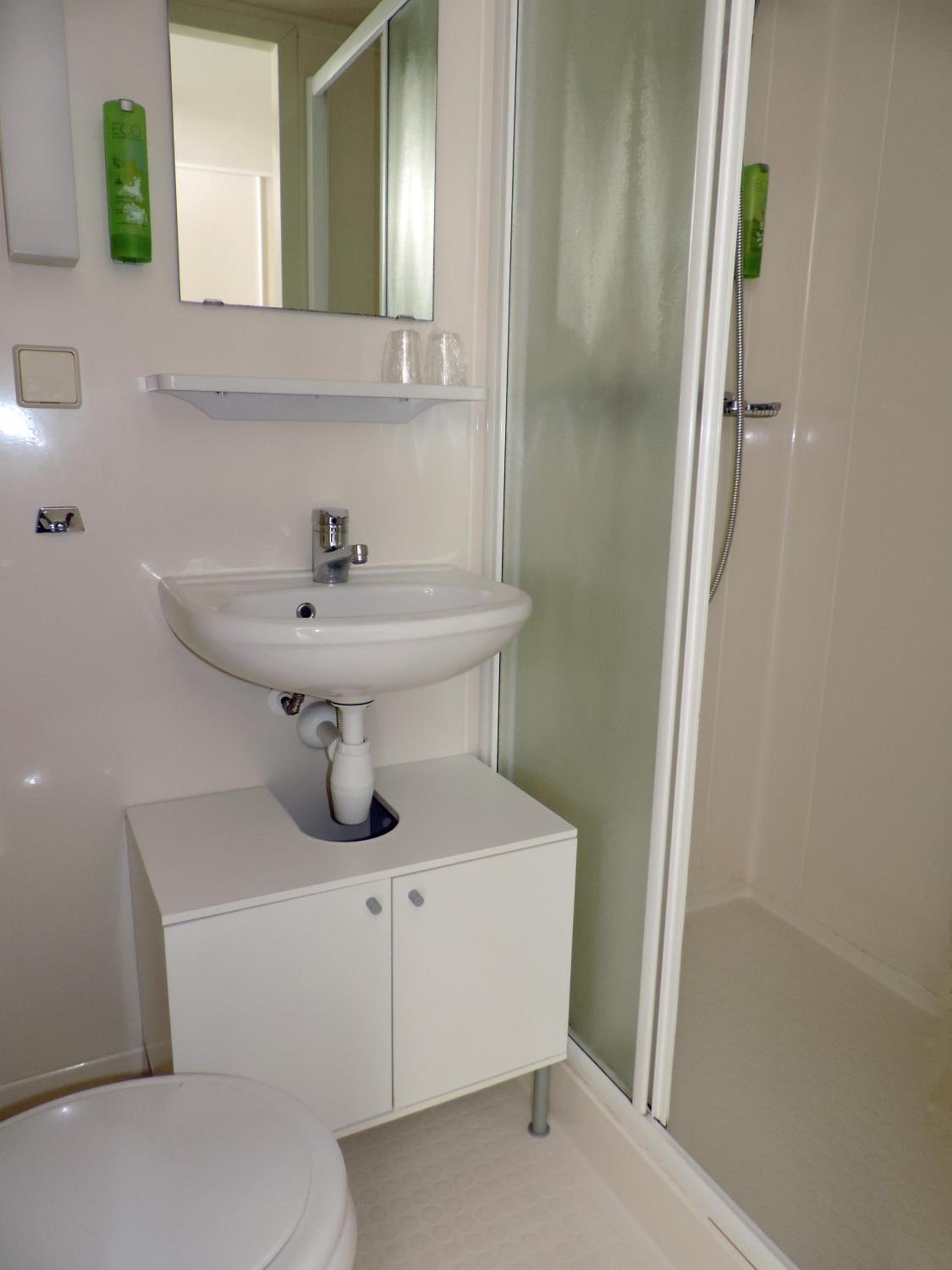 De douche ruimte was erg krap en geen mogelijkheid om de E bike overdekt op te laden
