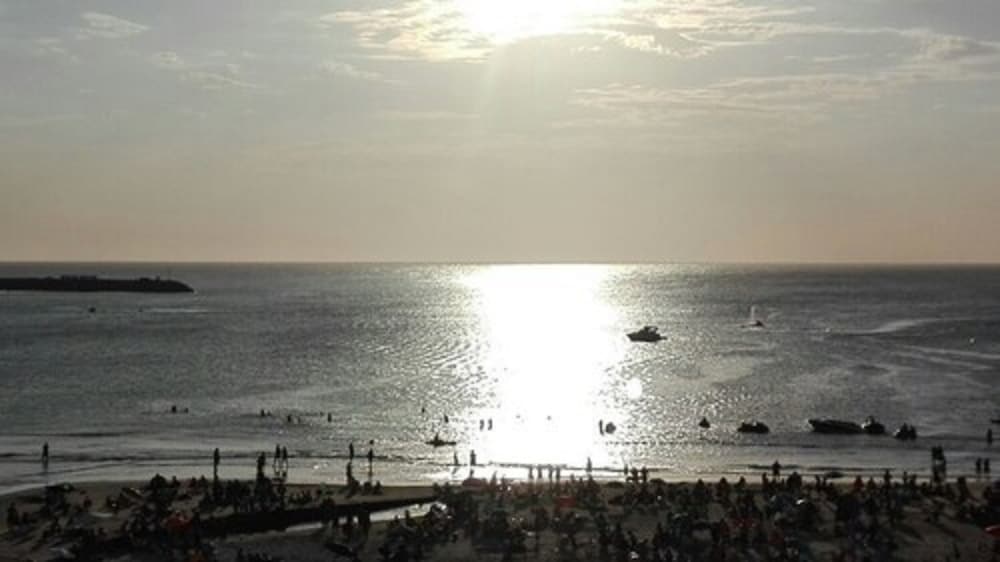 Our room was basic, outdated furnished and with an OK doublebed. The room had a TV on the wall, tea & coffen, toilet, bidet and shower. All was clean. The balcony has a side view of the beach and the rambla.