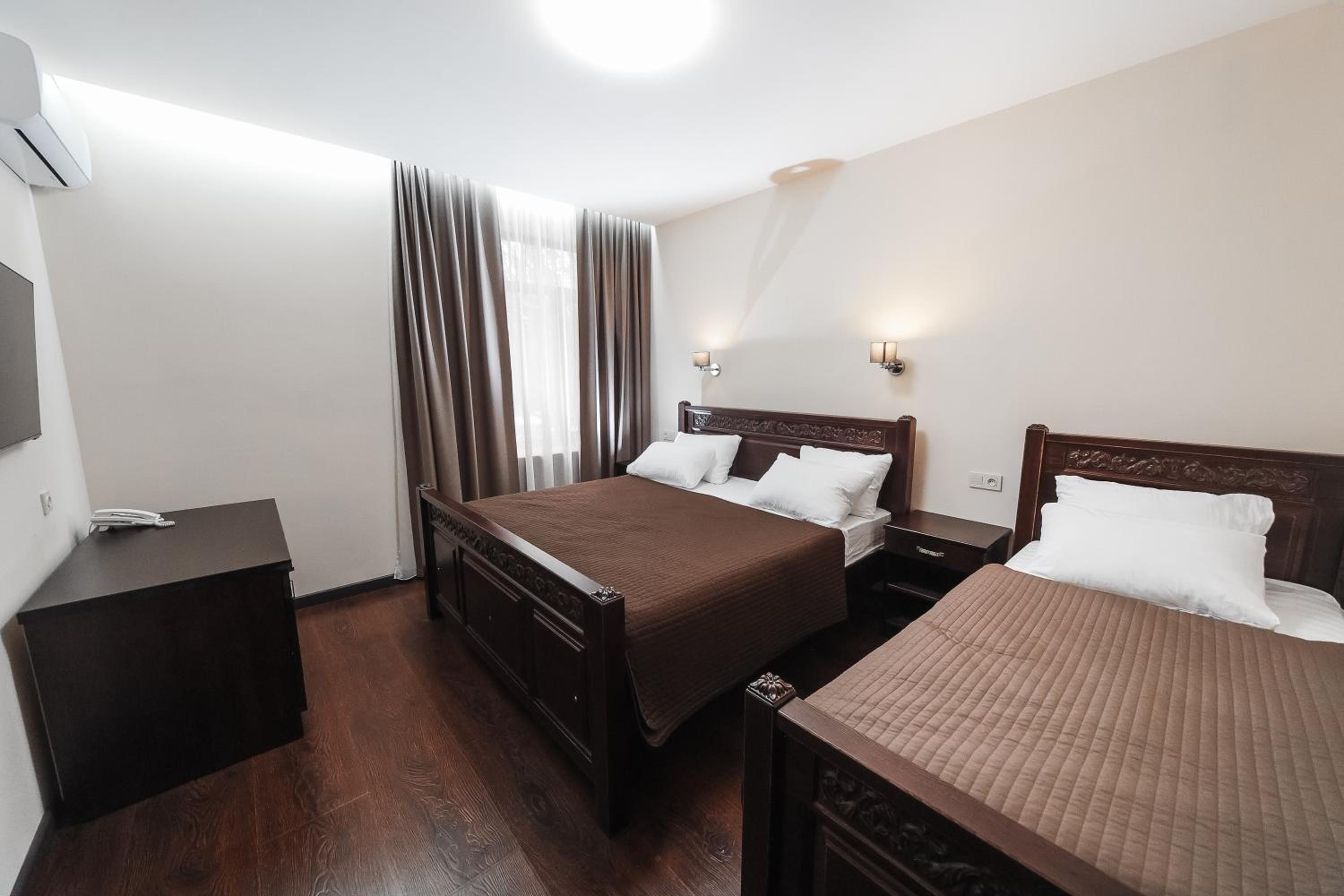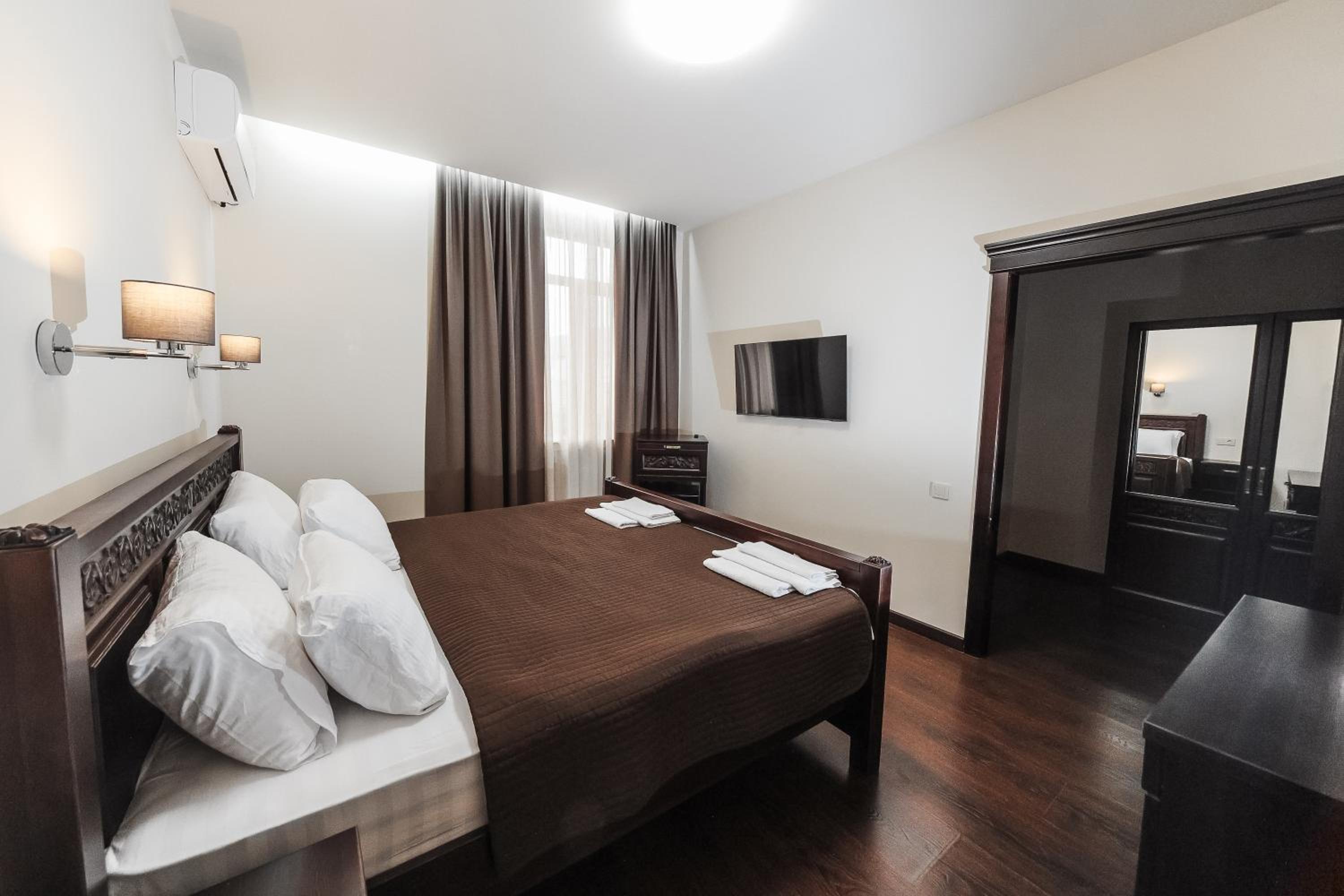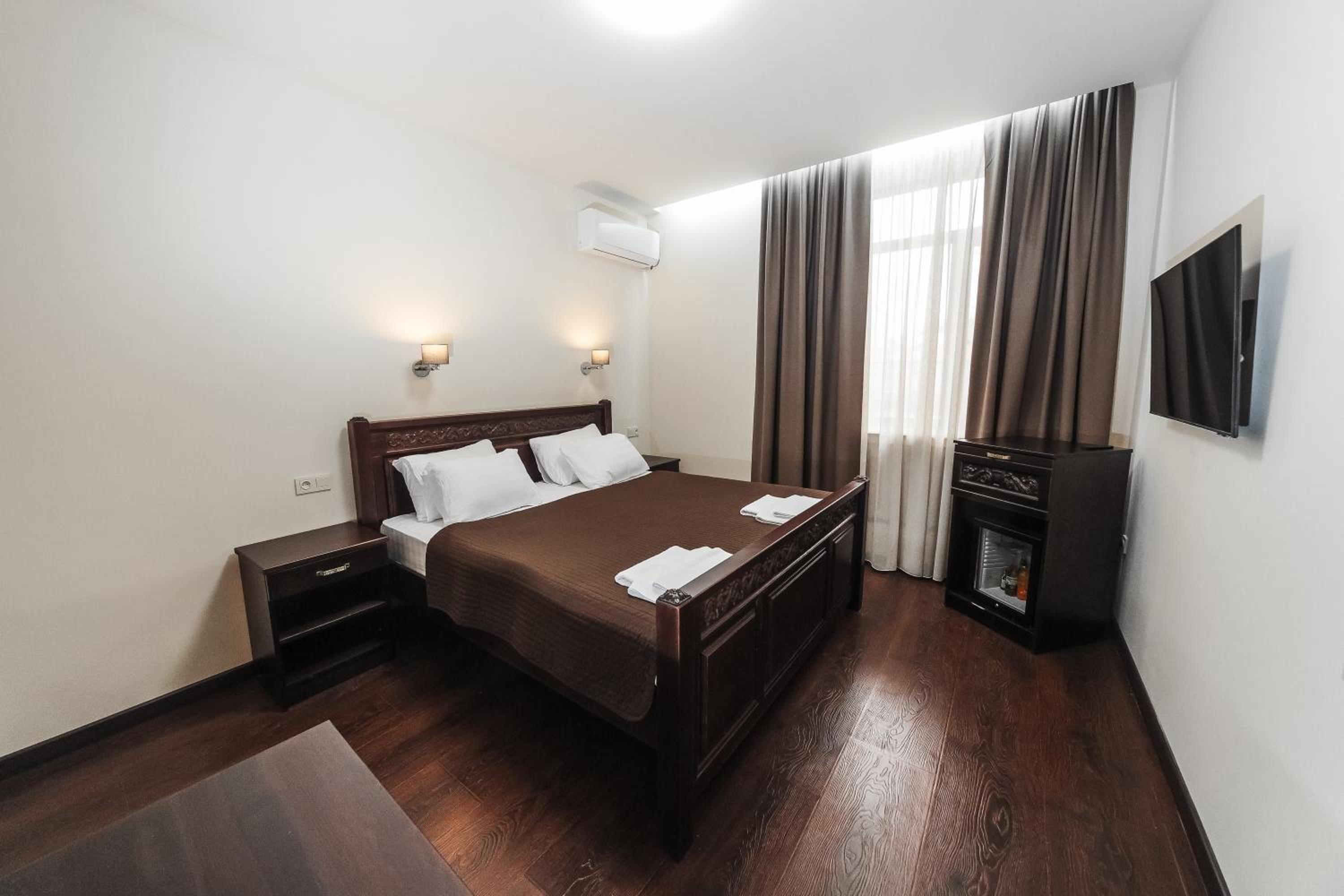 Each room at Dvin Hotel is equipped with a flat-screen TV, fridge, and free toiletries in the private bathroom. Indulge in Armenian and European cuisine at Dvin Restaurant, including a delightful summer cafe area.