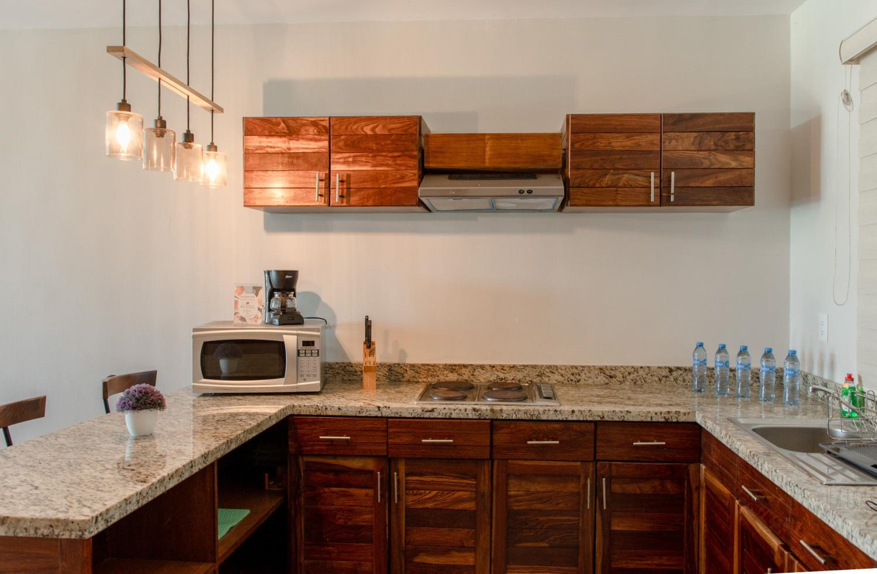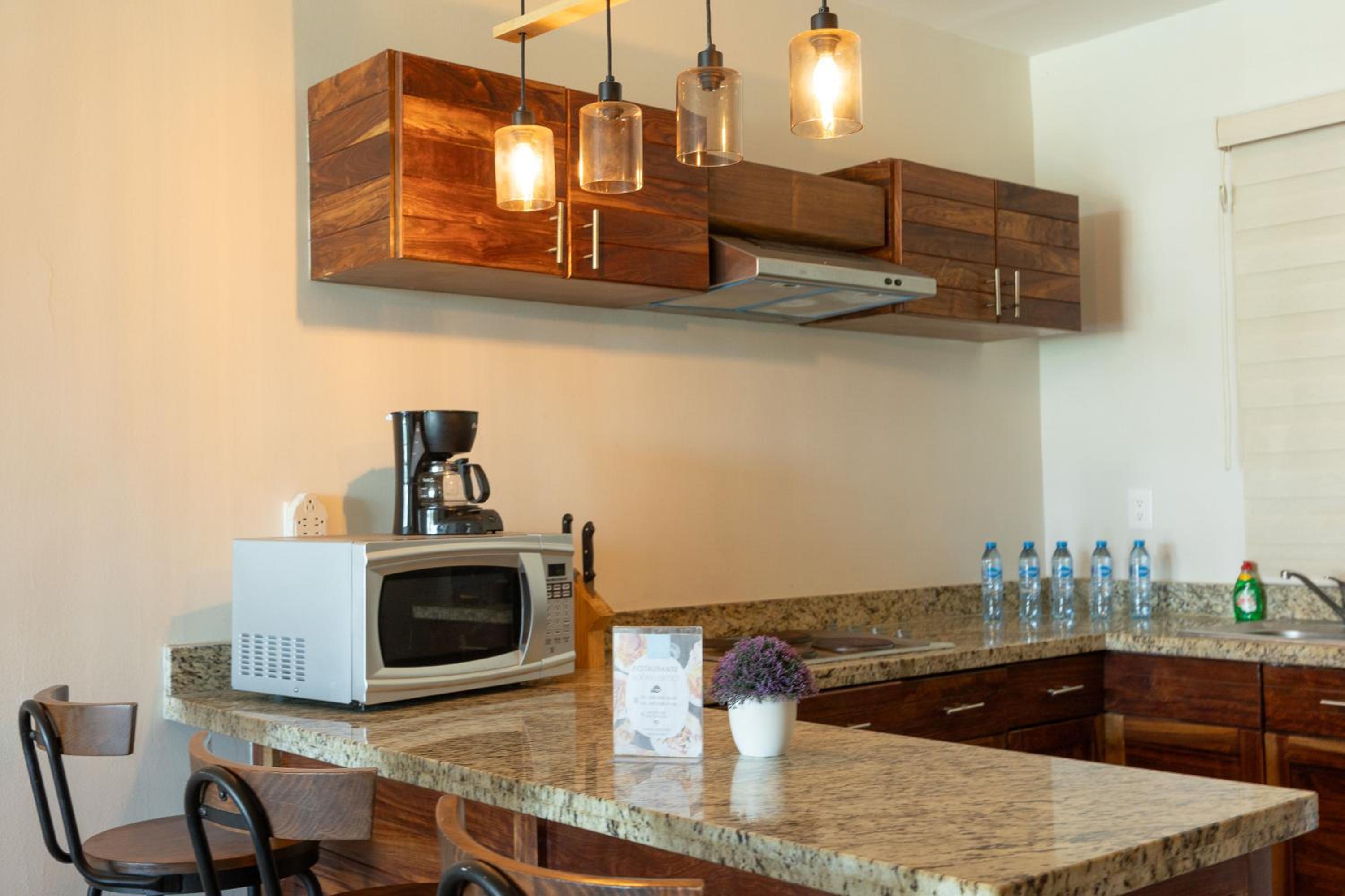 Estuvimos muy agusto en este departamento. Tiene lo elemental para poder prepar los alimentos y está frente al mar al cual puedes llegar cruzando el malecón que es peatonal y caminando puedes llegar a sitios agradables para comer.