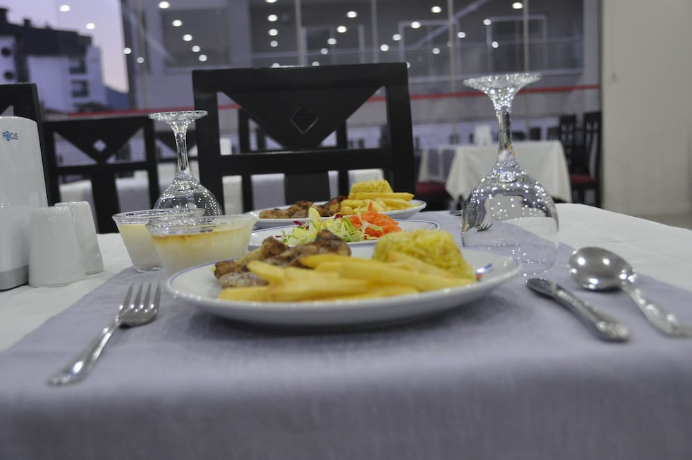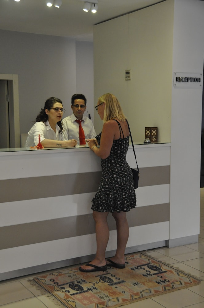 Hotellet ligger meget godt og det er nydelig udefra og i receptionen, men spisesalen og værelserne er noget slidte. Personalet er meget imødekommende og smilende. Morgenmaden er Tyrkisk morgenmaden var okay de første dage, men så blev udvalget småt og ingen frugt mere, men det er ikke tilfredsstillende, selvom der måske bliver færre gæster på hotellet, skal der stadig være er udvalg til de sidste gæster.