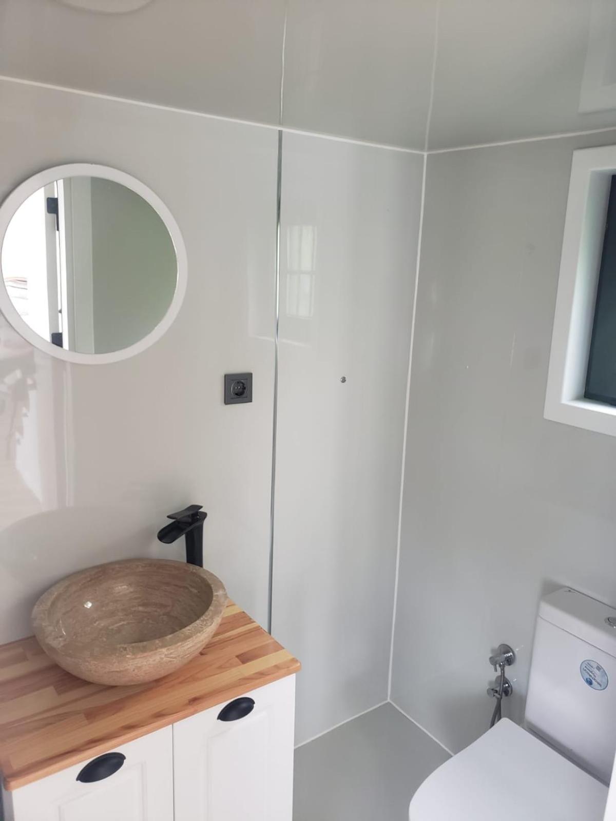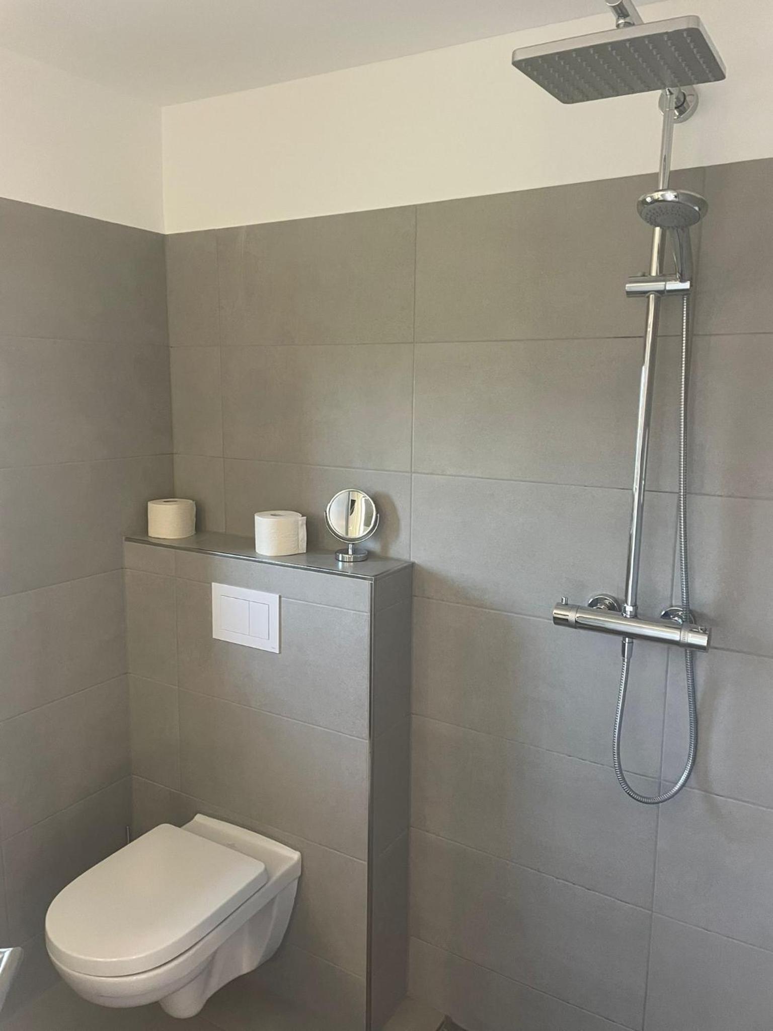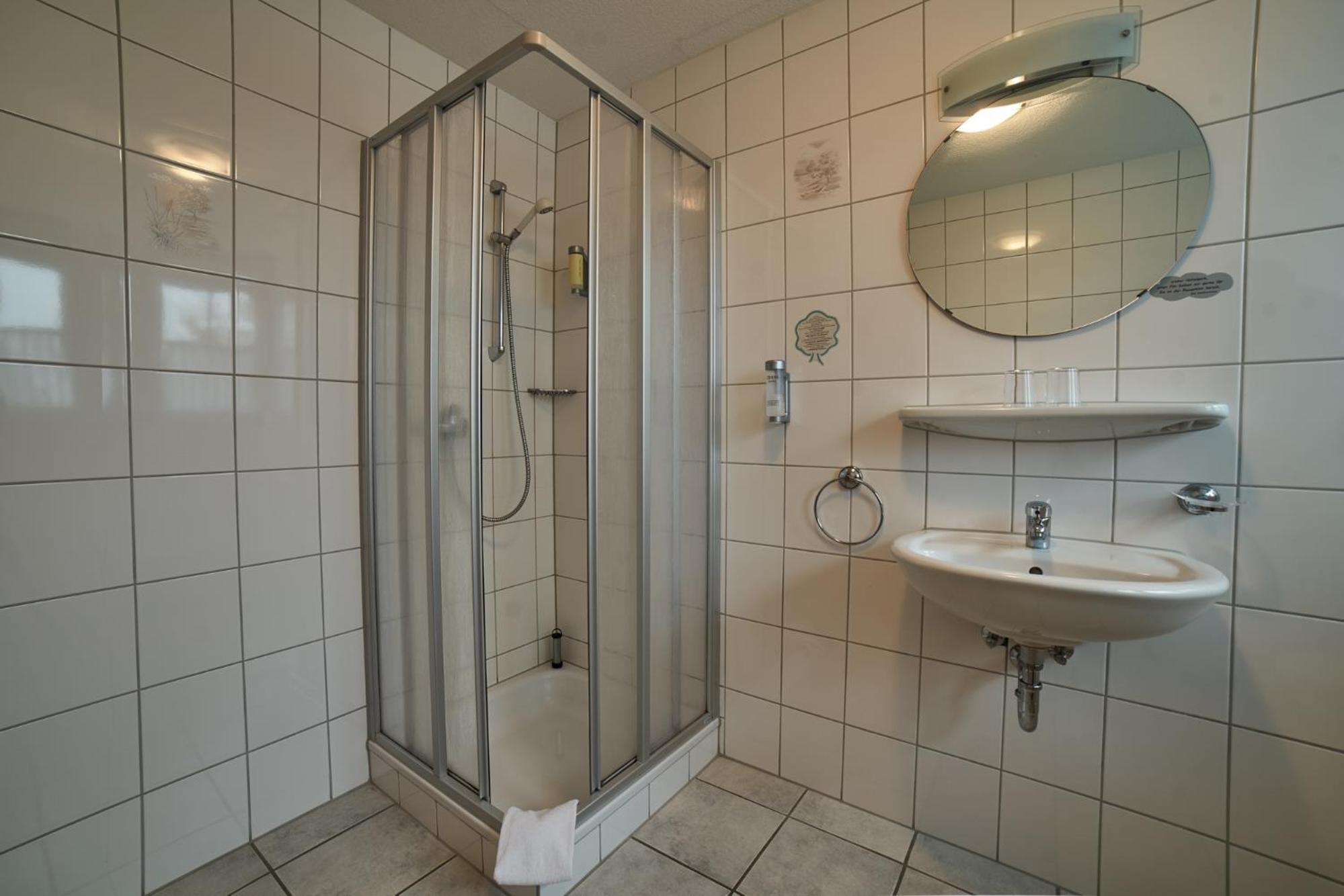 Das Badezimmer im Zimmer Nr. 3, ist sehr klein, man könnte auch sagen winzig. Für ältere und korpulente Personen ist dieses Badezimmer nicht geeignet. Während dem Toillettengang, kann man sich sogar im sitzen am Waschbecken die Zähne putzen.