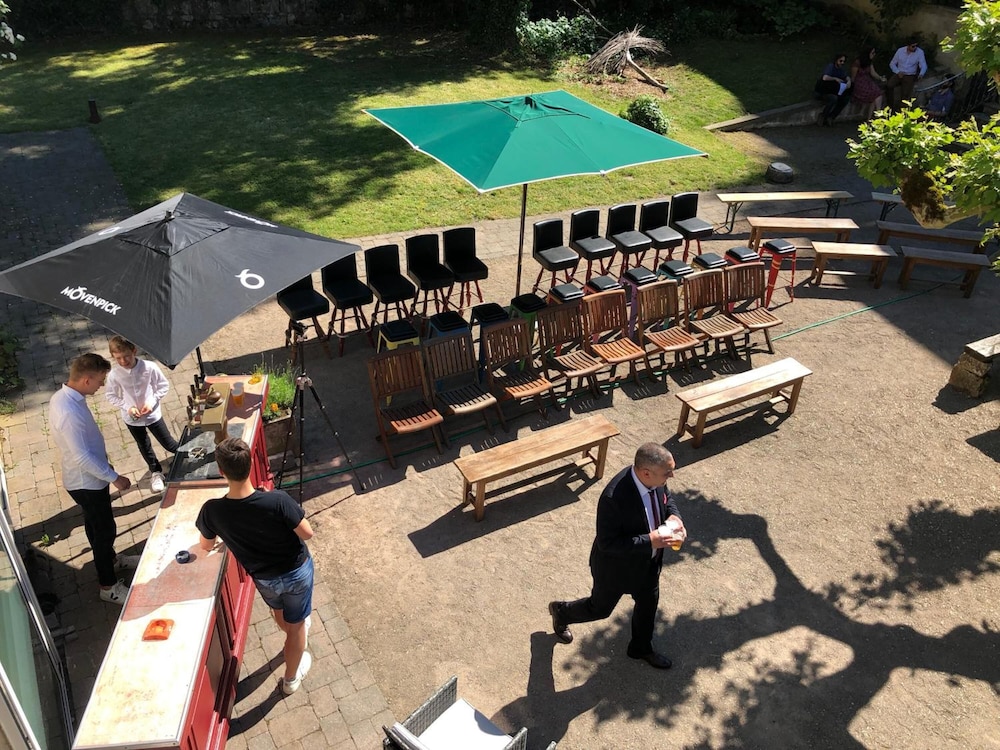 Very helpful staff. Room was very dark owing to ivy growing all over windows. Shower was over bath and sprayed everywhere as no screen to stop it. restaurant. was full for that evening but as it only sold pizza and pasta anyway we had a picnic in our room. Breakfast was expensive at 14 euros each so didn’t participate.