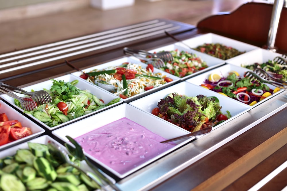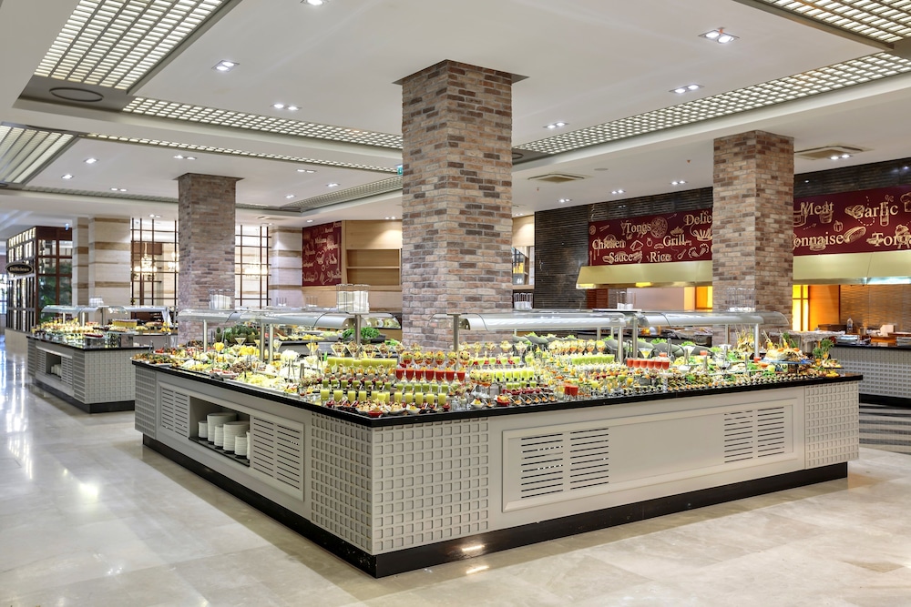 Savor international cuisine at Efes Restaurant, enjoy snacks at the cafe, and unwind at the bar, beach bar, or poolside bar. All-inclusive rates cover meals and select beverages.