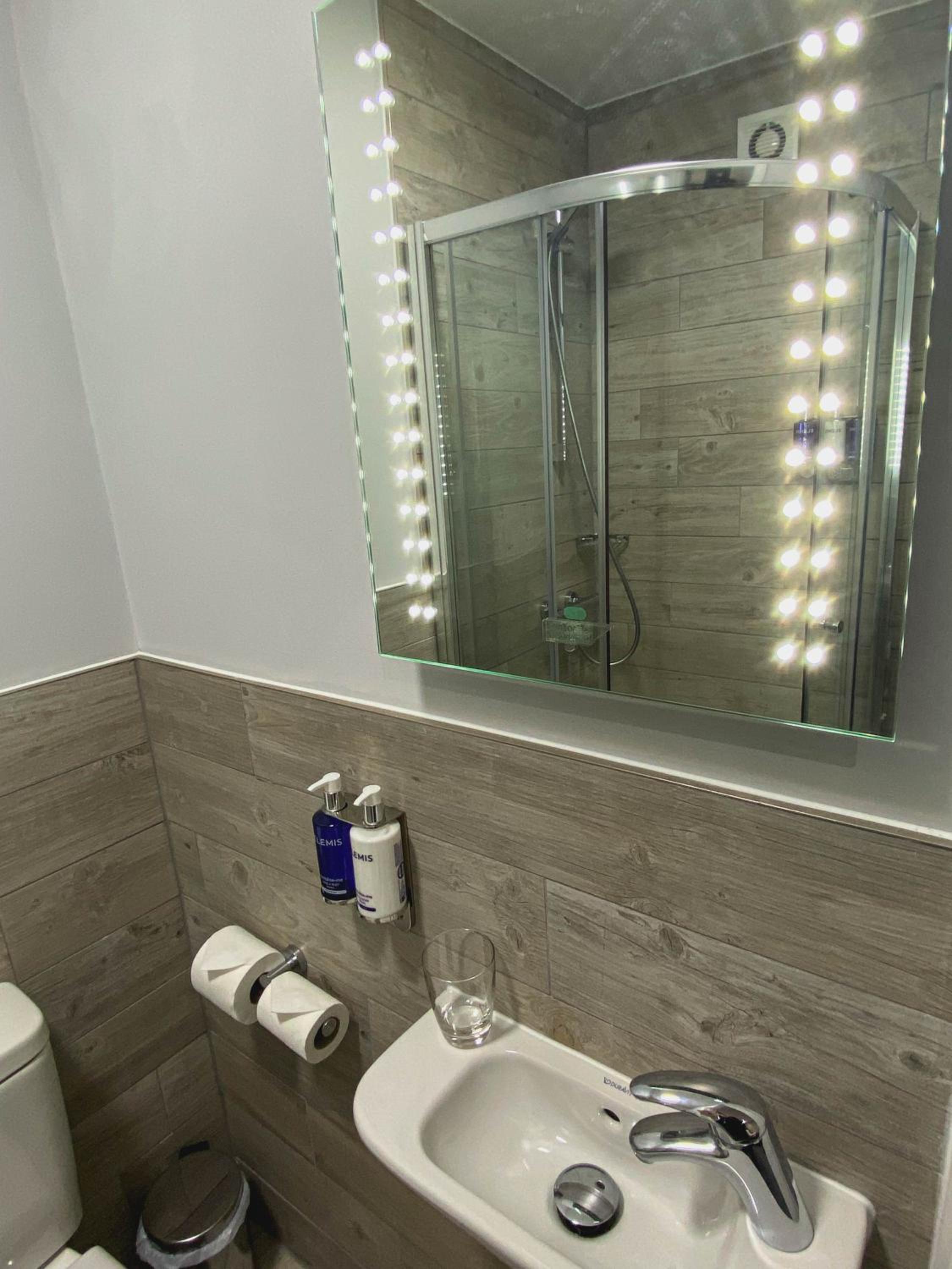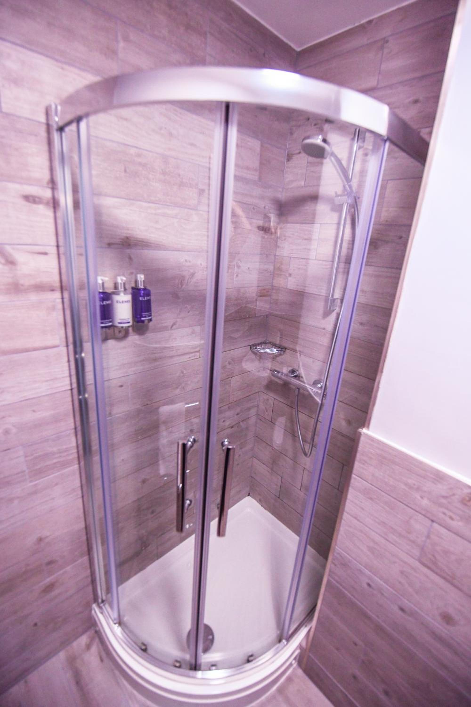 Size of the shower cubicle and incredibly slow lift