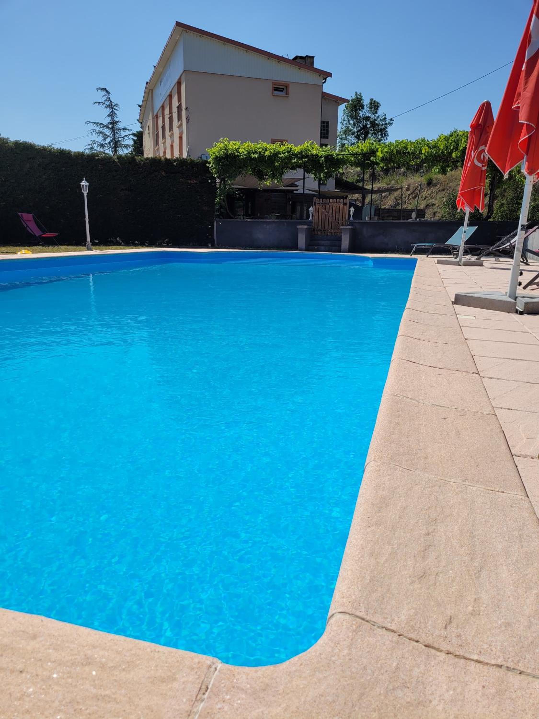 Outdoor Swimming Pool and Terrace - Enjoy the natural surroundings at Logis Hôtel Restaurant L'Escapade with its inviting outdoor swimming pool and a charming terrace, perfect for relaxation and soaking up the sun.