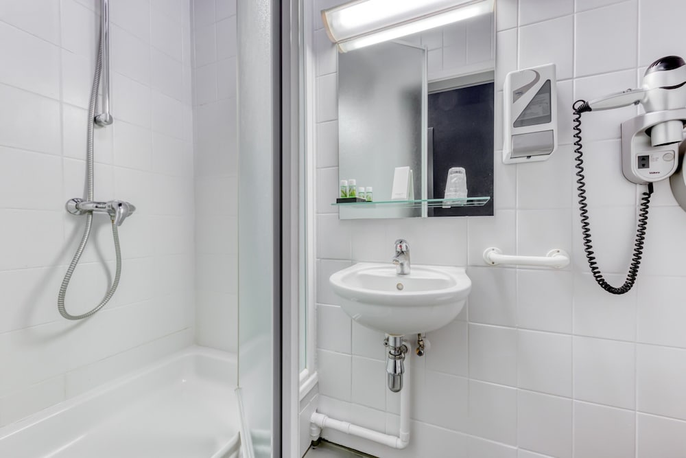 Busy in the night listening to what other people do as the walls are from paper.Dirty in every kind of way.hairs in the bathrooms stinky smell in all the hotel and a heavy perfume to cover the smell..shower was glogged, but there was a bathtab also dirty.The lady in the reception speaks only French even though we speak 3 languages.