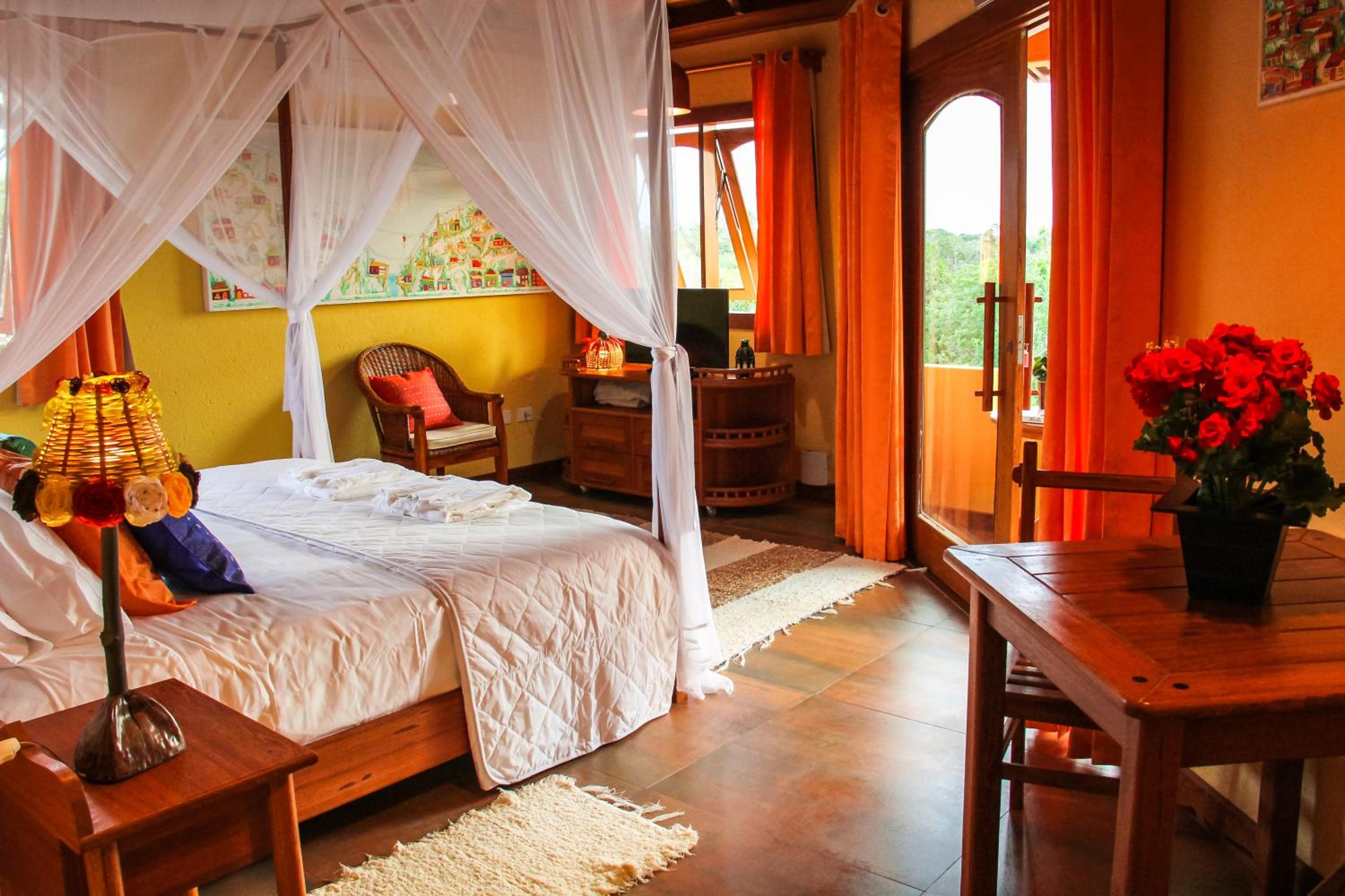 Sagui Boutique Hotel in Arraial d'Ajuda offers elegant rooms with modern amenities, including air conditioning, flat-screen TVs, and private bathrooms. Some rooms even boast a cozy seating area and a private terrace or balcony for a relaxing stay.