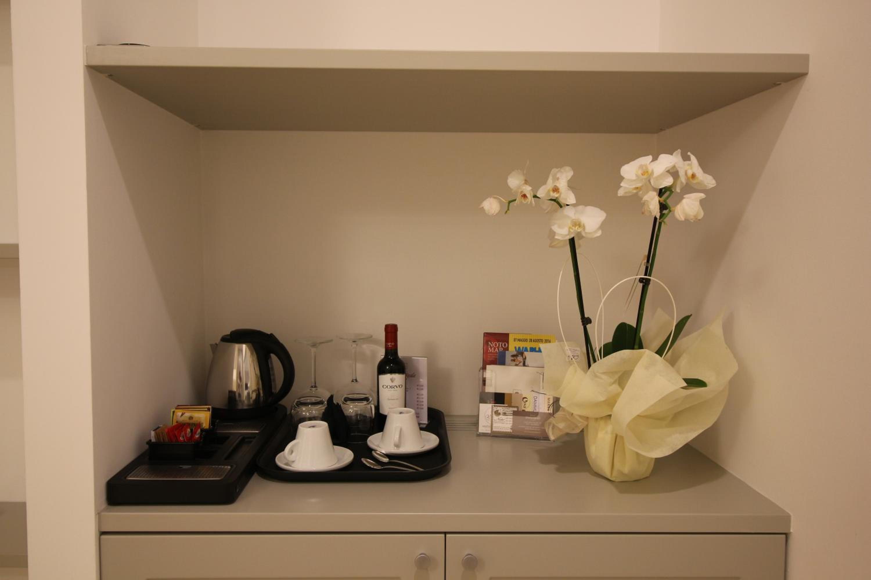 Questo è sicuramente l'hotel più bello in cui siamo stati in tutto il nostro giro in Sicilia posizione eccezionale dalla terrazza dell'hotel si vede un bel panorama della città e si è a pochi metri da uno dei palazzi più belli che ci sono a Noto anche la camera molto spaziosa e bella I letti sono molto comodi. In camera l'ospite si sente bene accolto con tanti piccoli servizi che sono delle coccole a partire dagli accappatoi e dalle ciabattine che vengono fornite ad altre piccole attenzioni che non ho trovato in altri hotel a quattro stelle ho trovato anche un bigliettino di benvenuto a mio nome da parte dello staff... molto buona anche la colazione è sicuramente un posto dove Tornerei volentieri.