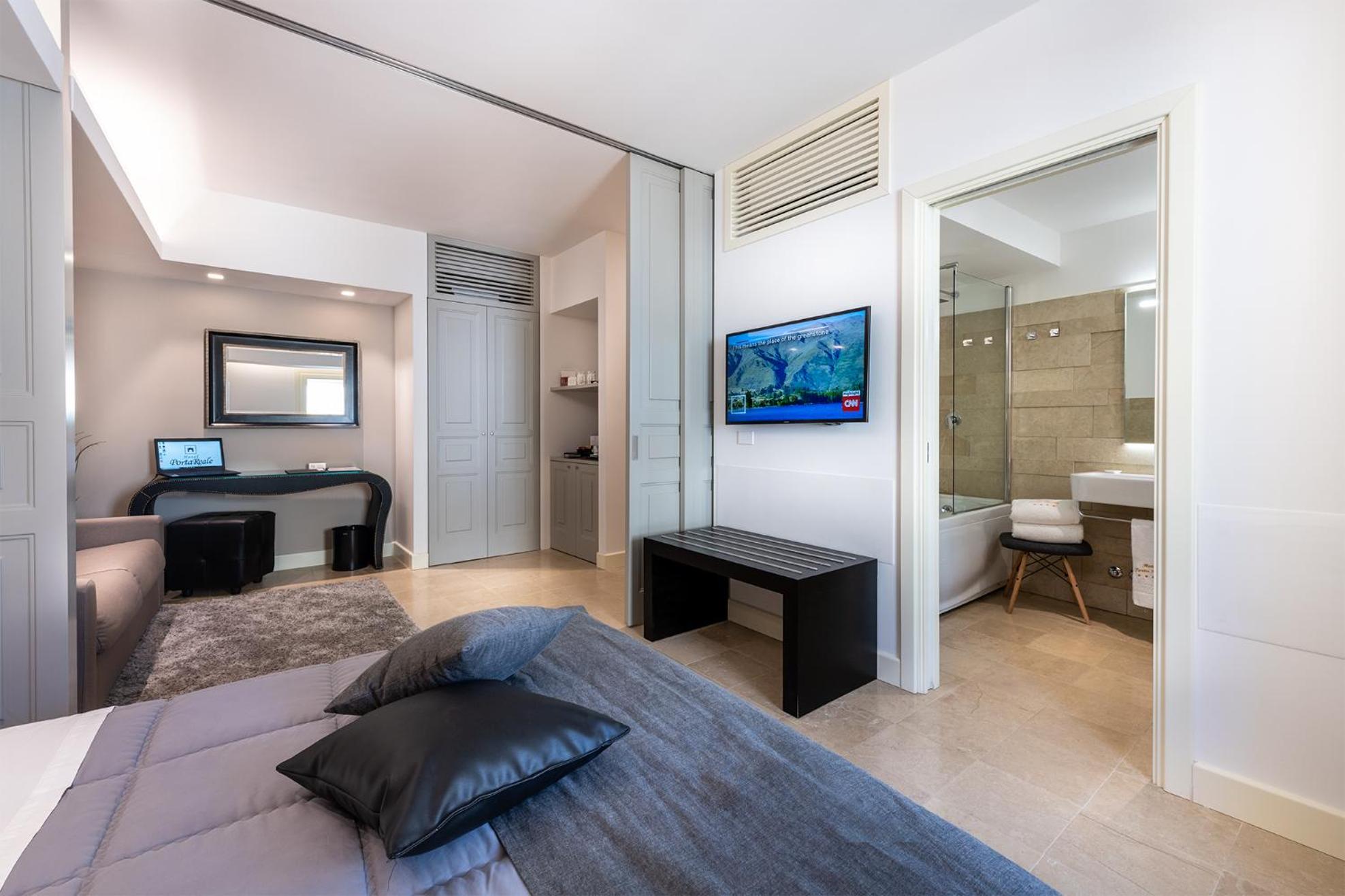 Guests can enjoy a sweet Italian breakfast with Sicilian specialties each morning. The hotel also offers digital newspapers, free calls to Europe, and en suite bathrooms with premium toiletries and bathrobes.