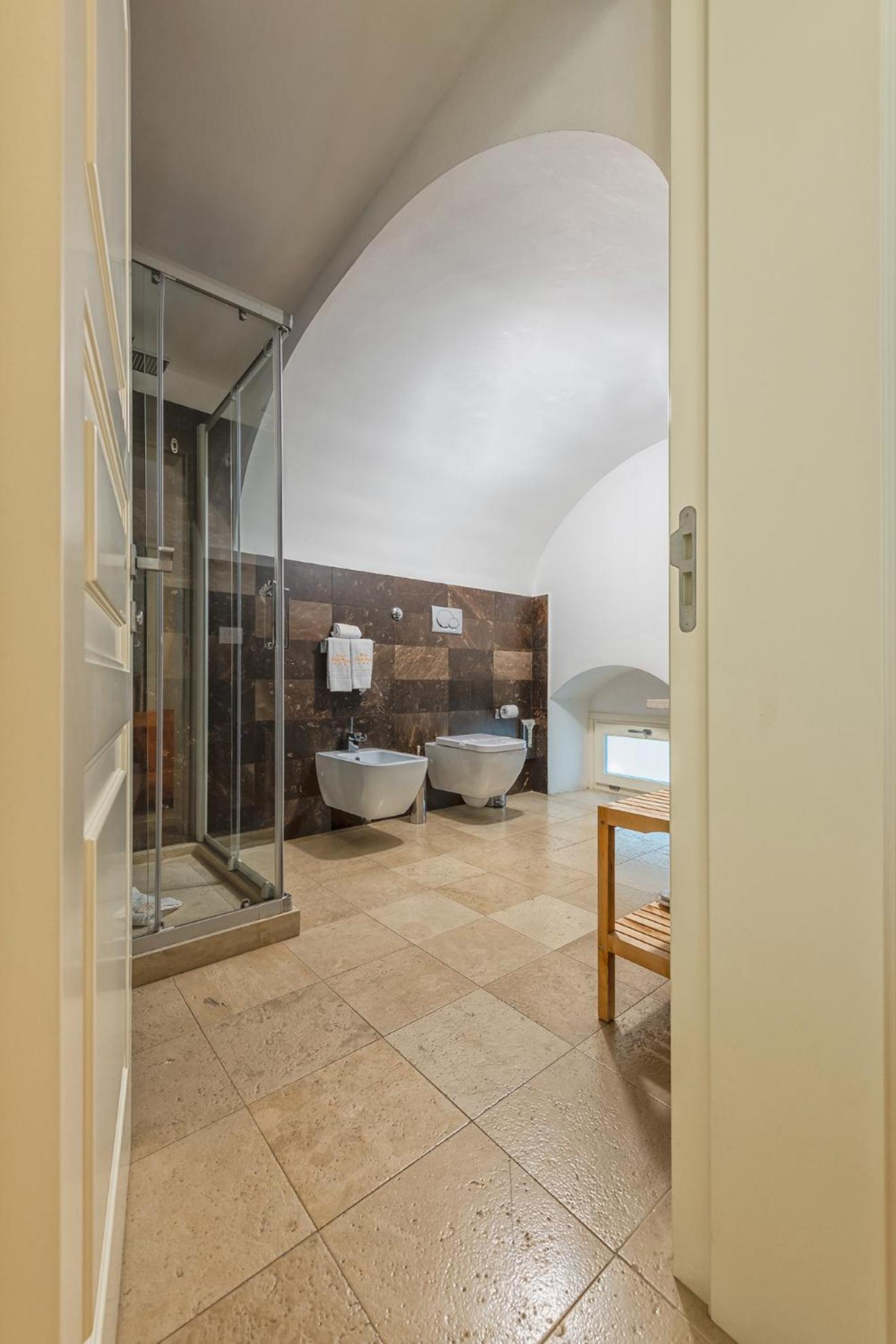 Purtroppo essendo stata ricavata da vecchie abitazioni combinate bisogna considerare la presenza di vari gradini...