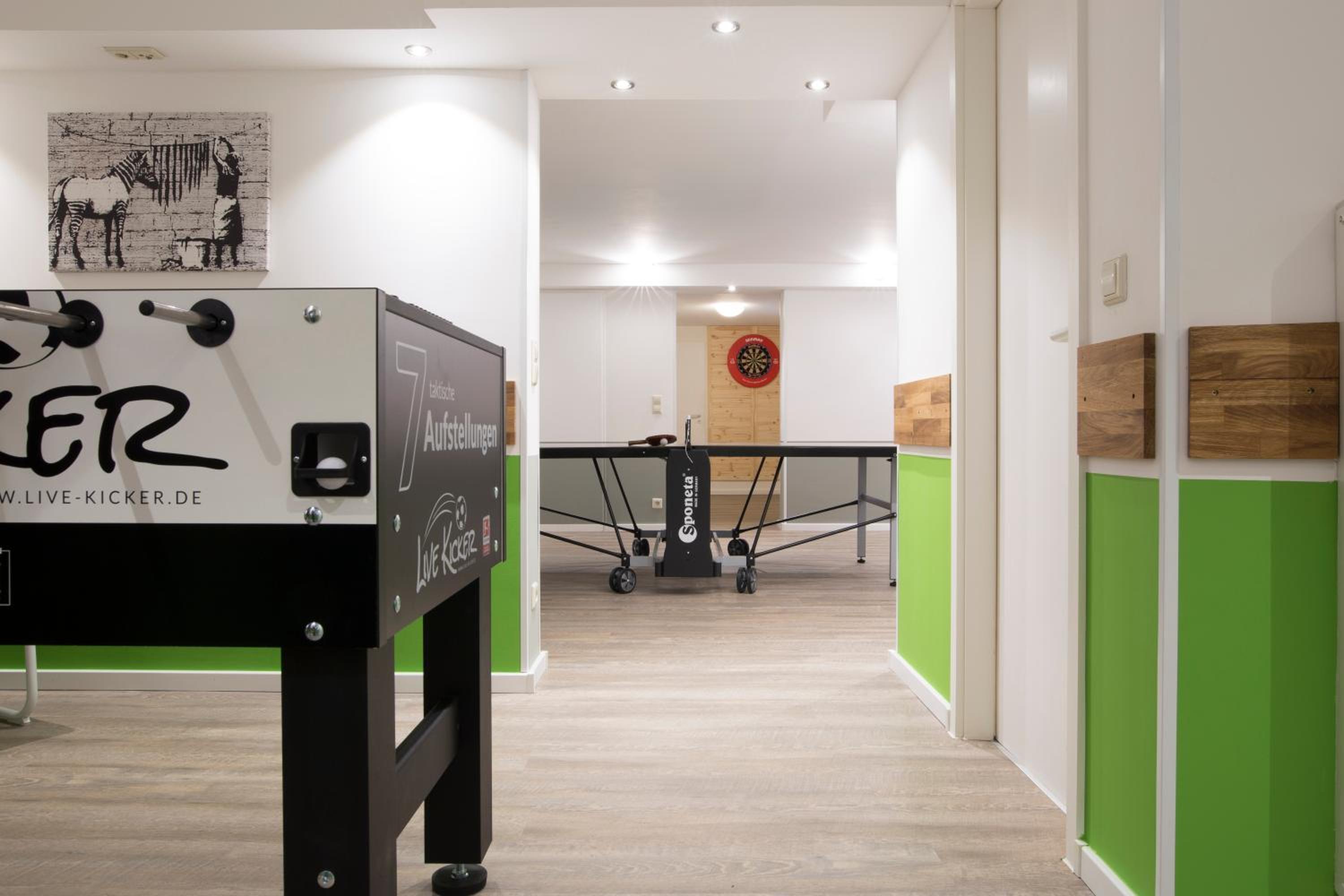 Eine tolle Unterkunft. Im Zimmer war sogar eine Playstation, was meinen Sohn sehr gefreut hat. Das E-Auto konnte kostenlos geladen werden. Im Keller finden sich mehrere Freizeitaktivitäten, wie Kicker, Dart etc..