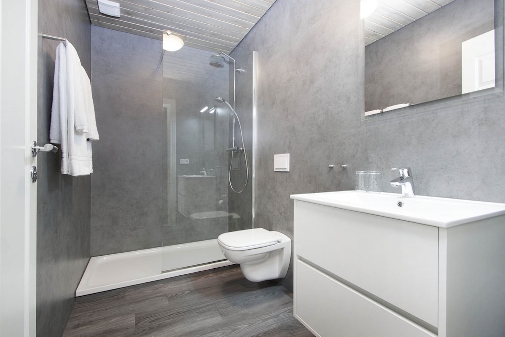 The heating of the bathroom was underdimensioned, and the window let in cold air. The outside lights couldn't be turned off - not optimal for viewing Aurora Borealis.
