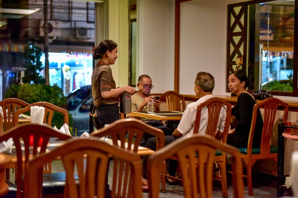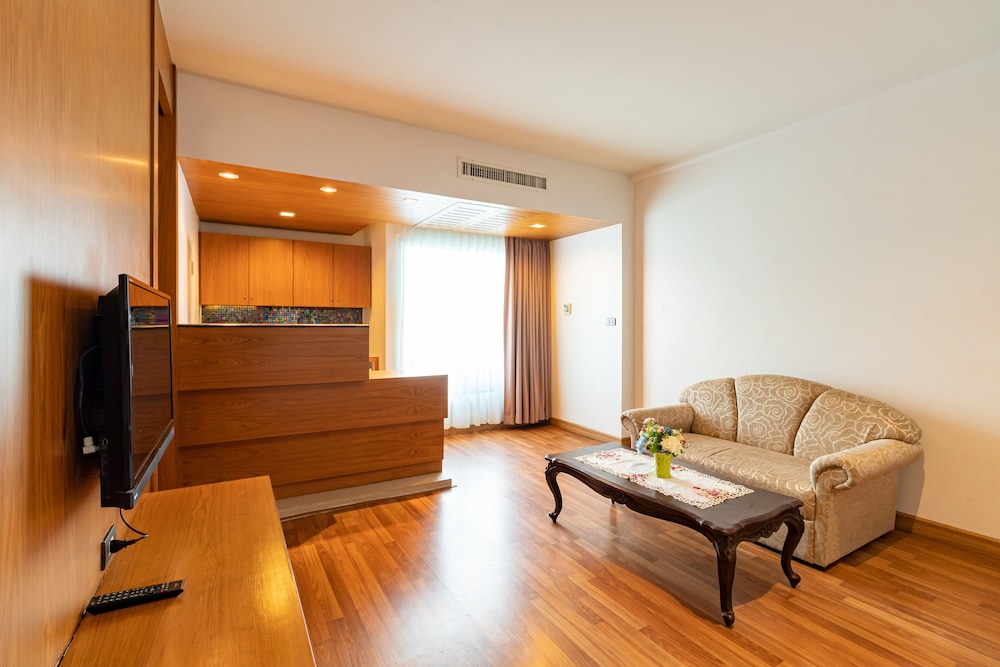 พนักงานบริการดี ยิ้ม ทักทาย พูดคุย ให้การต้อนรับดี สภาพห้องค่อนข้างมืด ไฟสลัวๆ ไม่ค่อยสว่าง ไม่เก็บเสียง ถ้าต้องการแต่งหน้า ก็จะดูยากหน่อย เพราะแสงไฟไม่สว่างเพียงพอ อุปกรณ์เครื่องใช้ ถ้าเทียบกับราคาที่จ่าย ในหลักพัน สิ่งอำนวยความสะดวกควรจะมากกว่านี้ ไม่มีไดร์เป่าผม ผ้าเช็ดตัว หมองๆ ไม่ค่อยสะอาดเท่าไหร่ ห้องน้ำ มีแก้วน้ำ มีสบู่ แชมพูให้ แต่ไม่มีแปรงกับยาสีฟัน ที่ปกติโรงแรมหลายๆ ที่ควรจะมี มีน้ำอุ่นน้ำเย็น มีกระติกน้ำร้อนให้ โดยรวมพอใช้ ไม่ถึงกับดี แต่ถามว่าความคุ้มค่า ไม่คุ้มกับเงินที่เสียไปเท่าไหร่ เพราะสิ่งอำนวยความสะดวกที่คิดว่าเราคาเท่านี้ควรจะมีกลับไม่มี ที่จอดรถ มียามดูแล แต่ไม่มีความช่วยเหลือจากยามถ้าจะถอยรถออก หรือเอารถเข้าจอด มีแต่ชี้ว่าจอดตรงไหน แล้วก็ไปเอาเอง ไม่ค่อยใส่ใจลูกค้าด้านนี้เท่าไหร่ จะรอดูการปรับปรุงเปลี่ยนแปลงนะคะ แต่ถ้าการบริการแค่นี้ คิดว่าค่าห้องแพงเกินนะจ๊ะ
