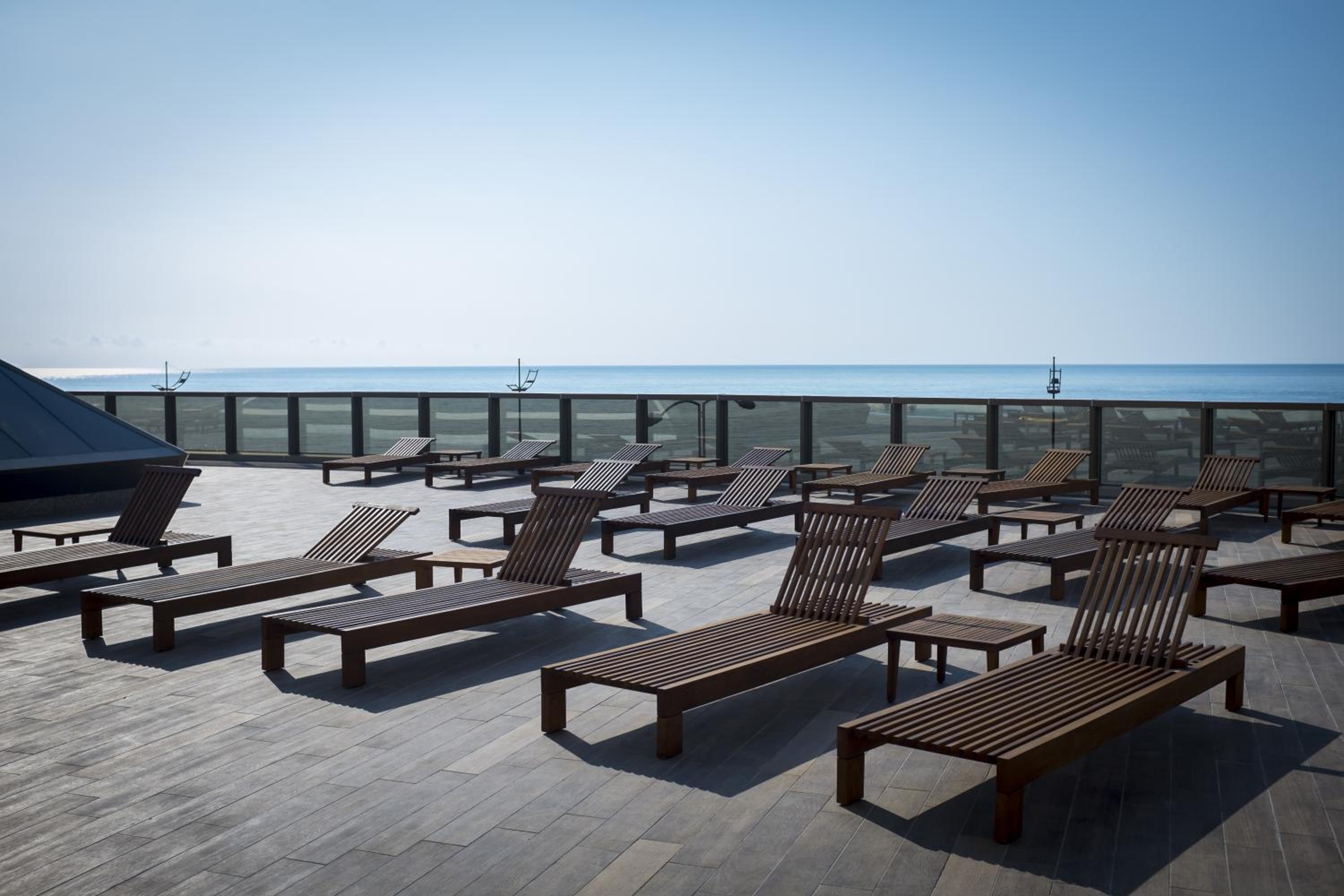 Elegant Rooms: Experience a sophisticated stay with free Wi-Fi, air-conditioning, and flat-screen TV. Some rooms offer a private balcony with stunning sea views.