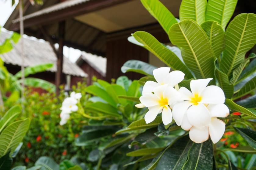 The rooms feature simple wooden furnishings, a safety deposit box, and a balcony seating area overlooking the lush garden. Selected rooms even come with a TV for entertainment, and all rooms have a private bathroom with a shower.